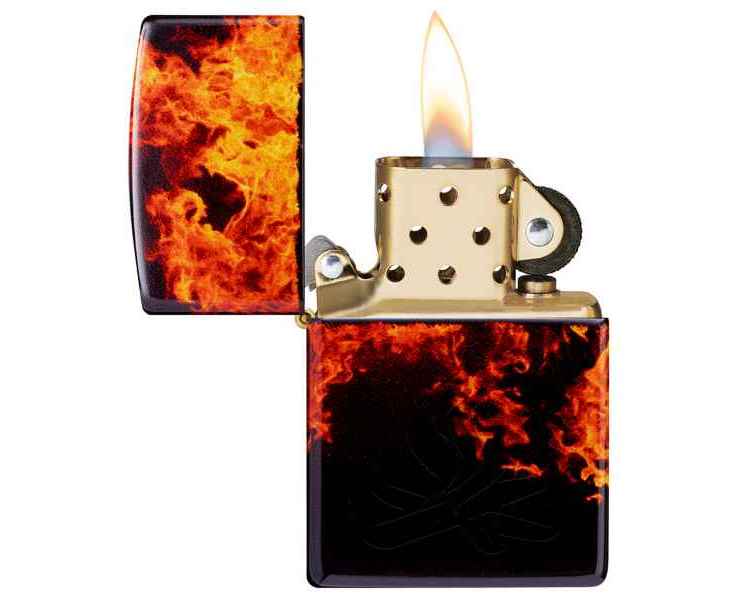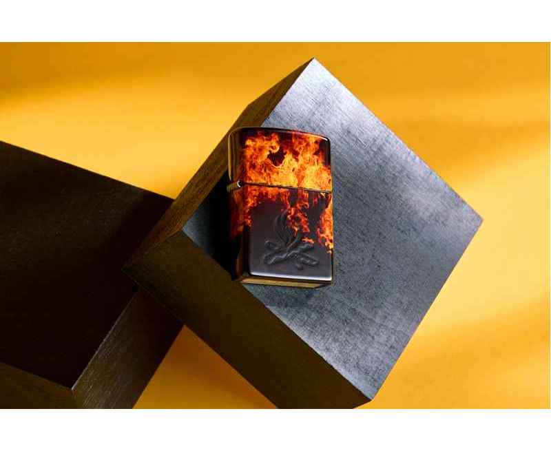 Зажигалка ZIPPO Fusion Inferno Design с покрытием 540 Tumbled Brass, латунь/сталь, разноцветная, 38x13x57 мм