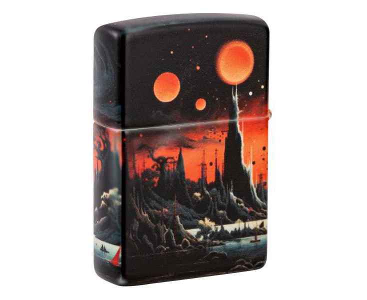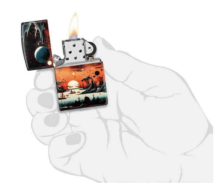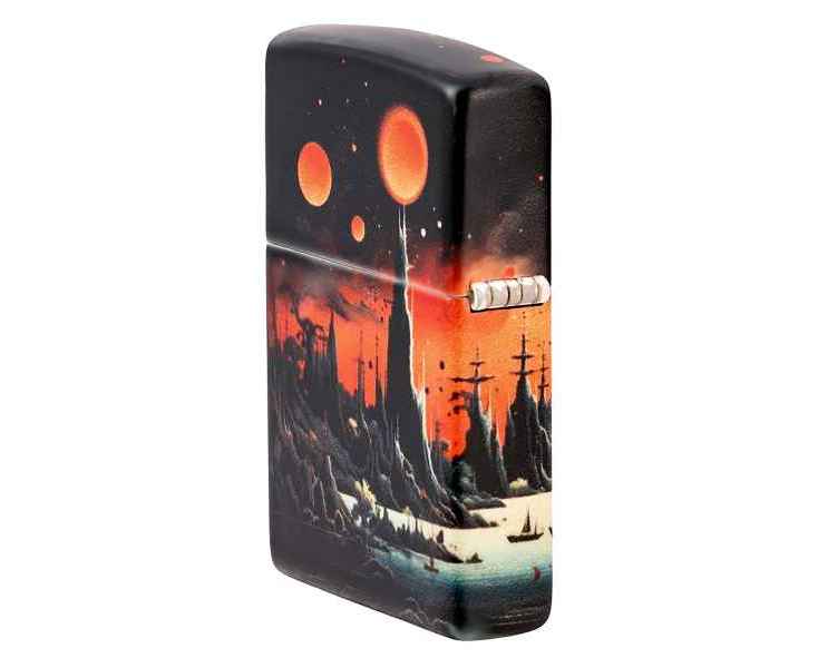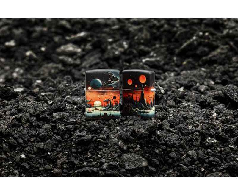 Позвольте этой зажигалке 540 Color перенести вас на далёкую планету. Пустынный пейзаж простирается со всех сторон: умиротворенные военные корабли на фоне скалистых склонов под пылающим красным небом.
