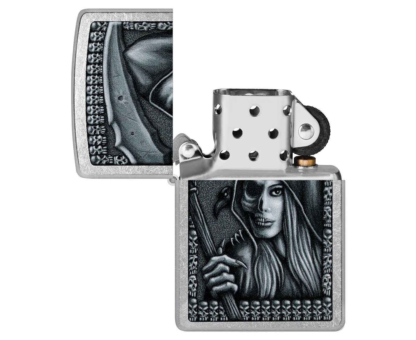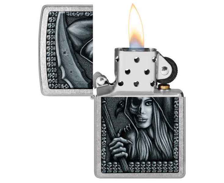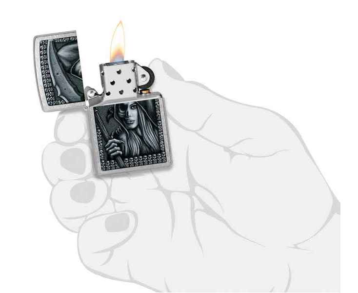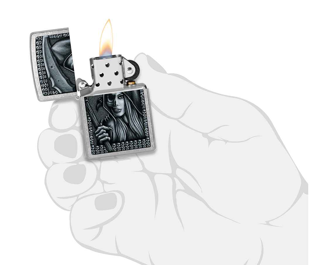 Посмотрим на Смерть с несколько иного ракурса благодаря мрачно-красивому дизайну, выполненному методом цветного изображения на классической зажигалке Street Chrome.
