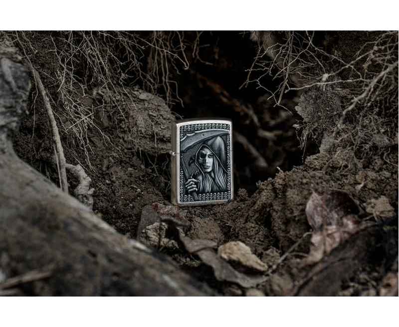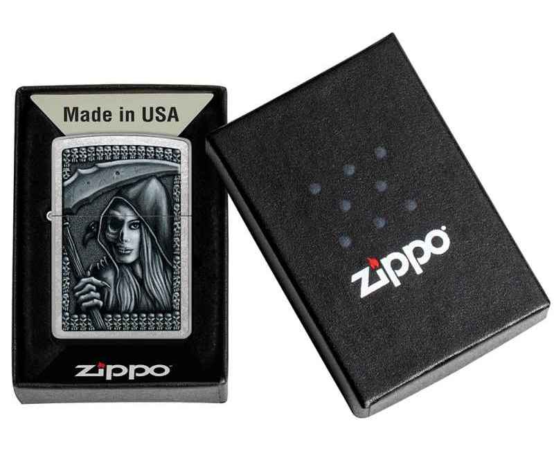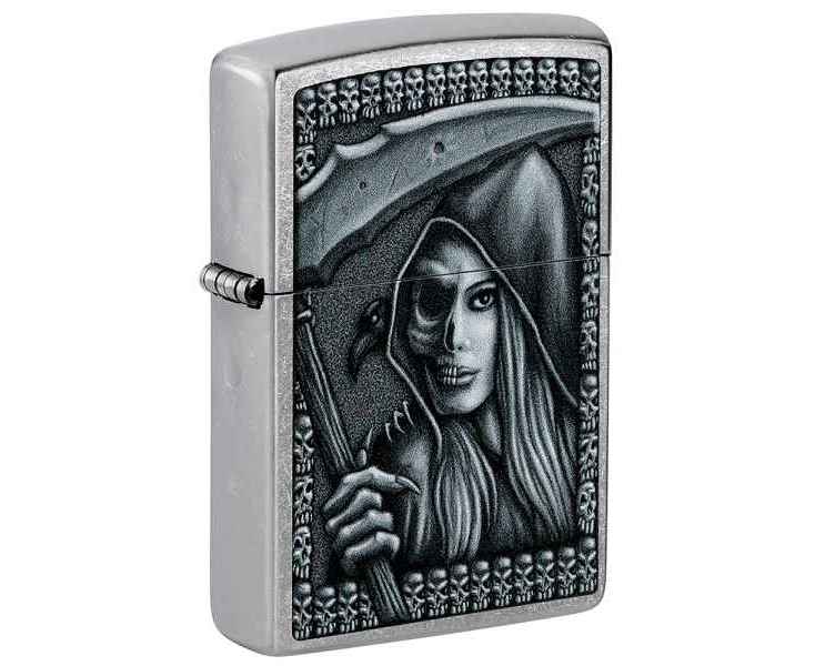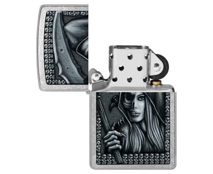 Зажигалка ZIPPO Grim Beauty с покрытием Street Chrome, латунь/сталь, серебристая, матовая, 38x13x57 мм
