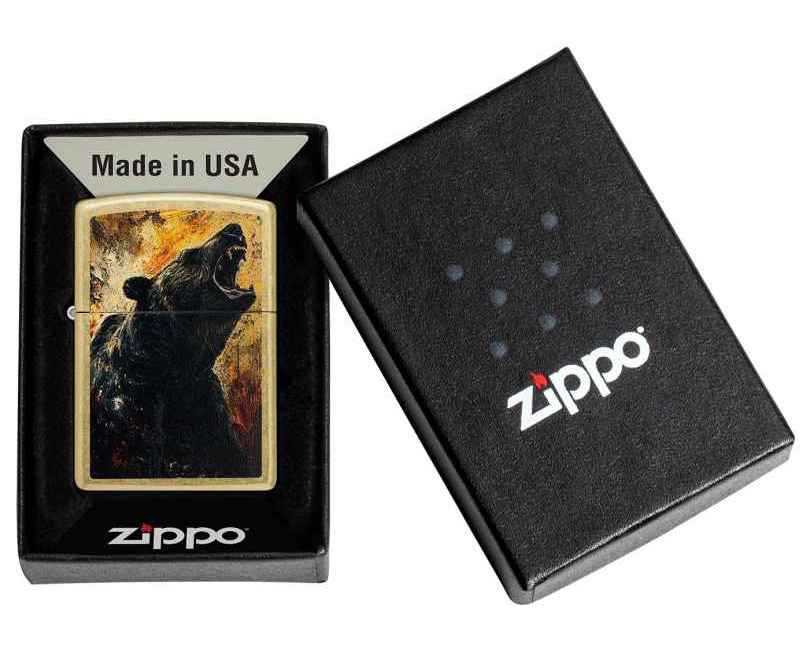 Зажигалка ZIPPO Grizzly Roar Design с покрытием Street Brass, латунь/сталь, золотистая, 38x13x57 мм