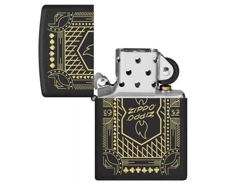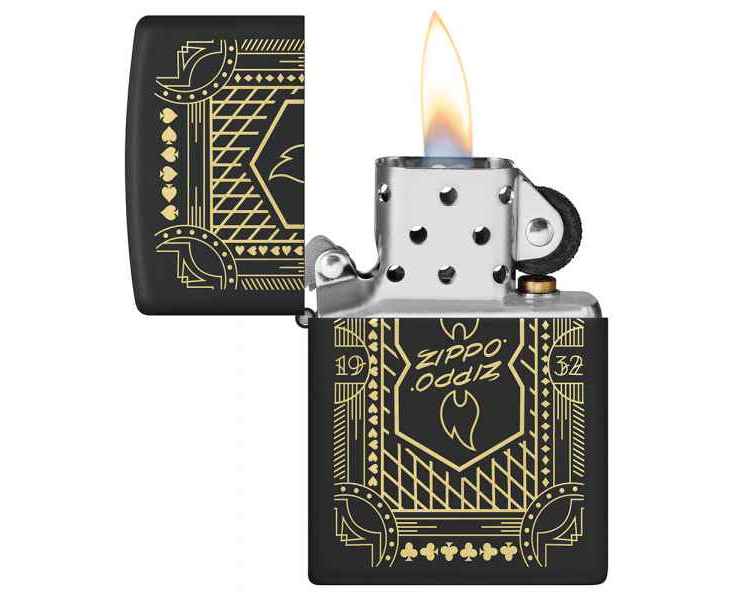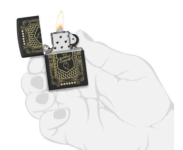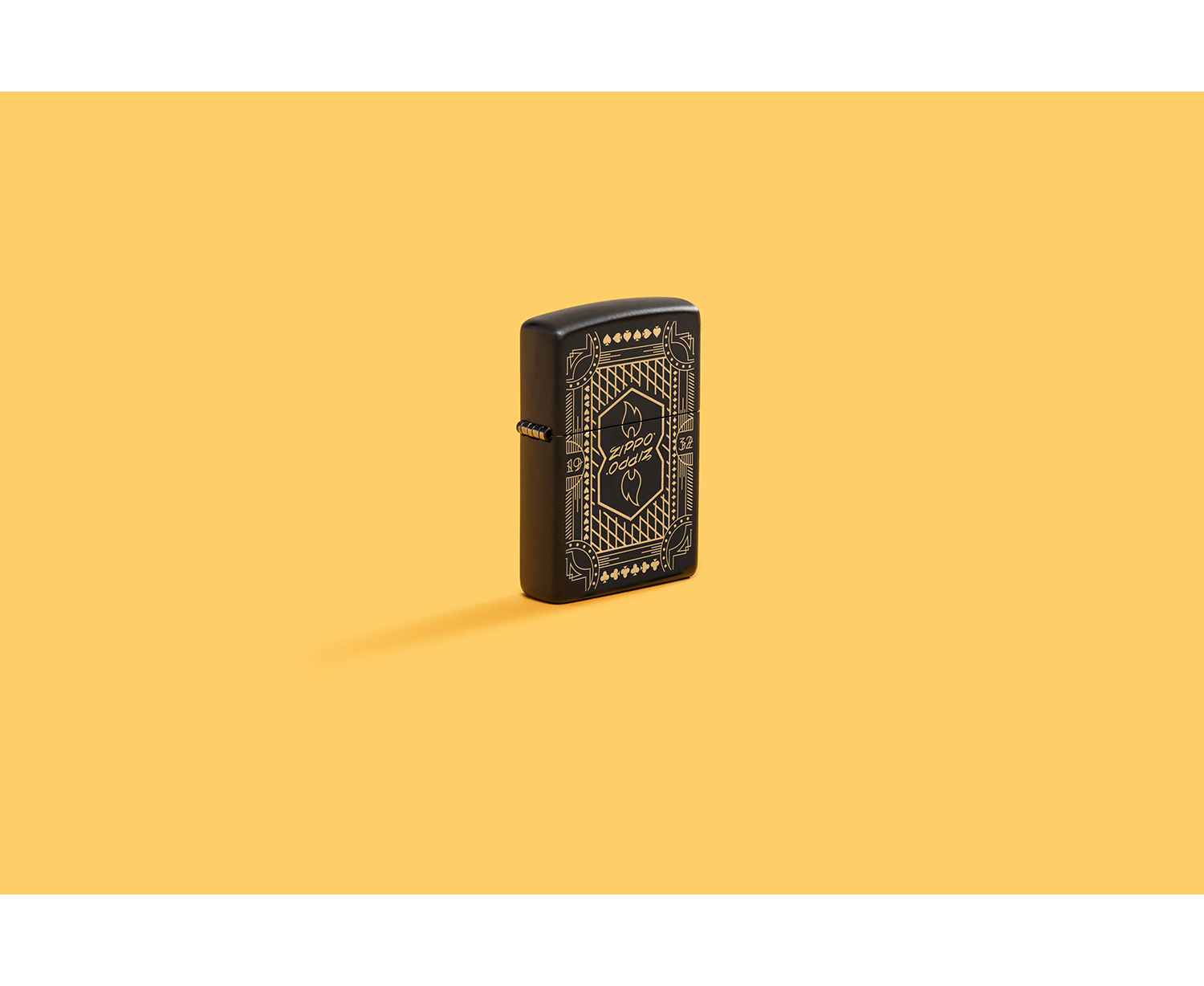 Изображение пламени Zippo, выполненное в виде завораживающего линейного мотива, украшает поверхность этой классической зажигалки черного матового цвета, создавая замысловатый узор с помощью лазерной гравировки.