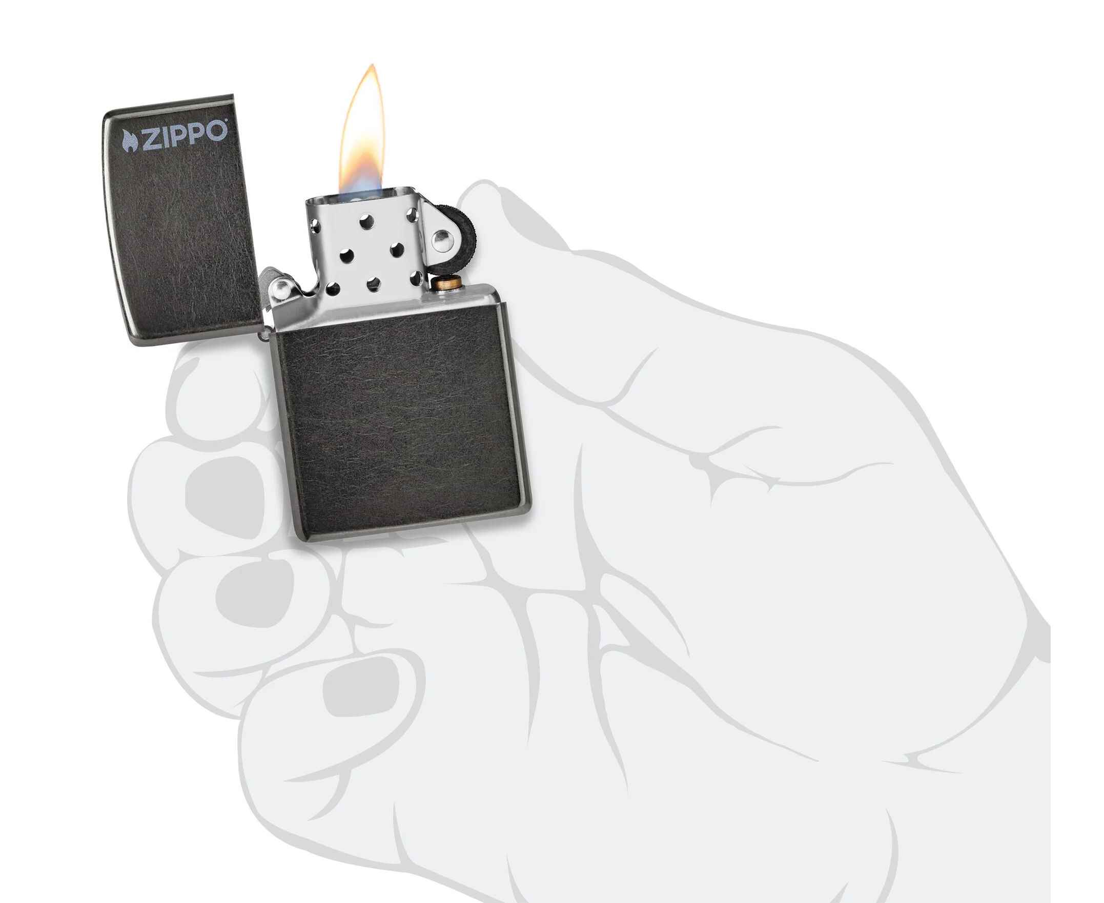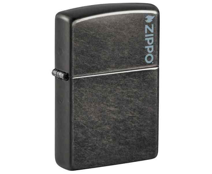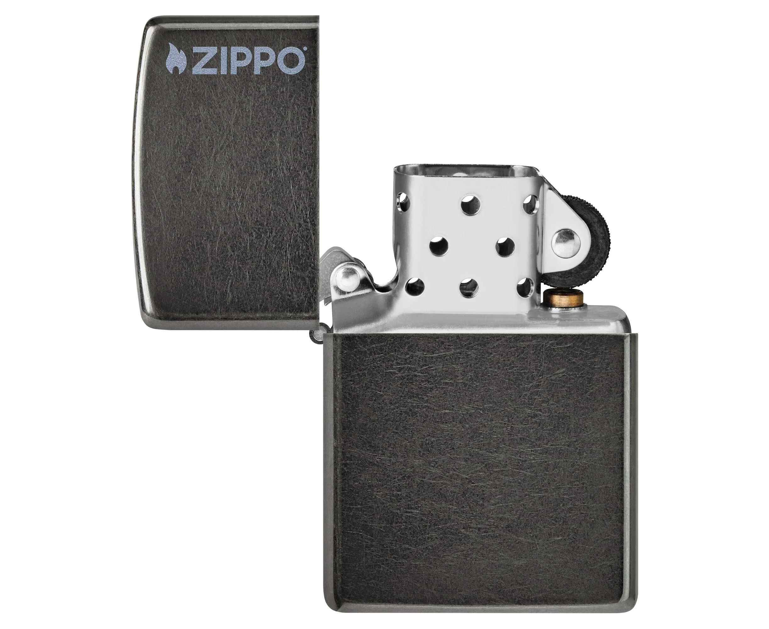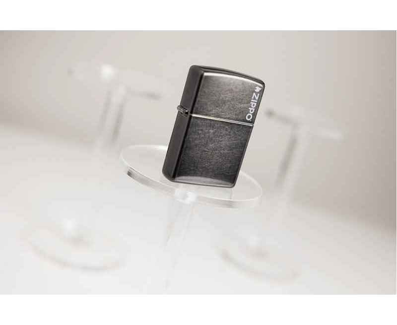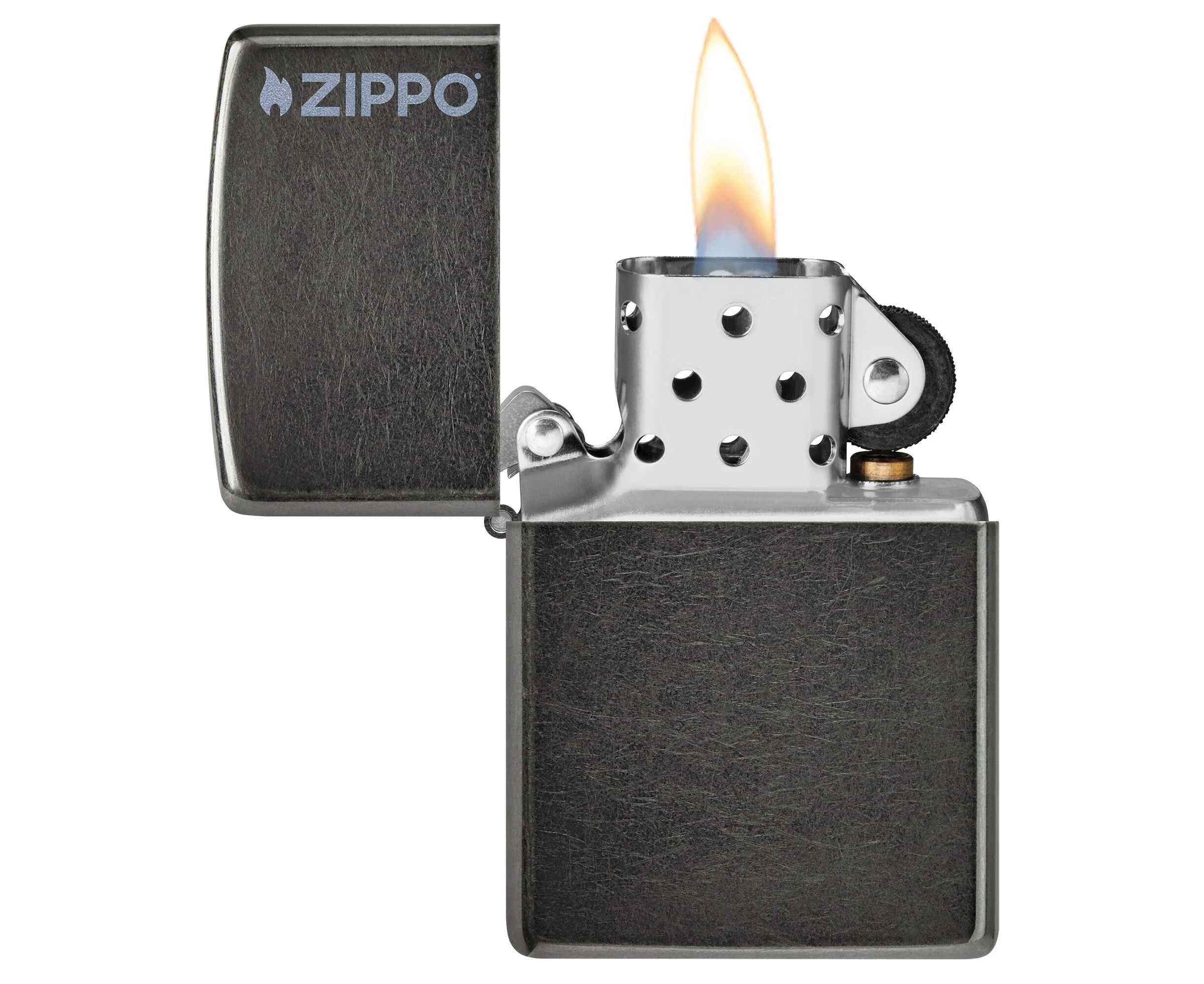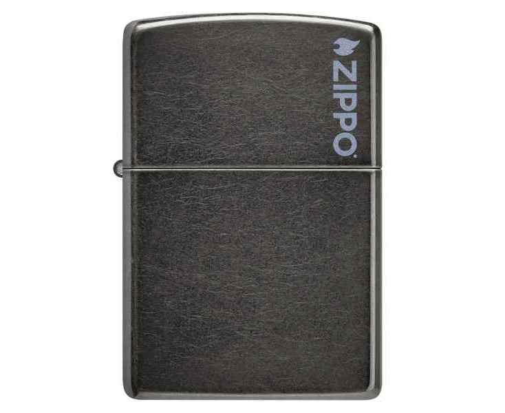 Классическая серая зажигалка украшена цветным логотипом Zippo, который создает контраст с элегантной полупрозрачной поверхностью.