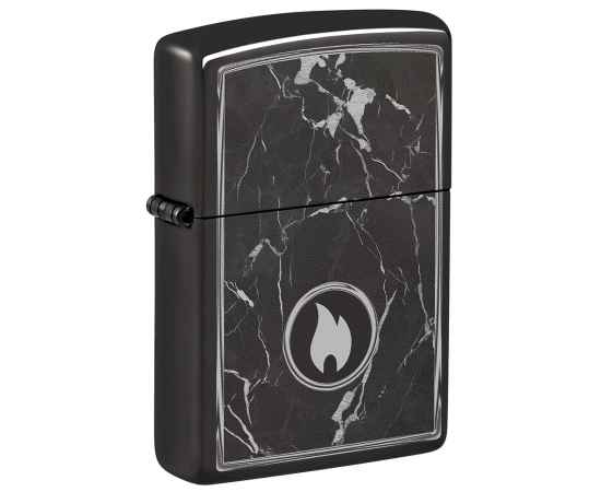 Зажигалка ZIPPO Marble Flame с покрытием High Polish Black, латунь/сталь, черная, глянцевая, 38x13x57 мм