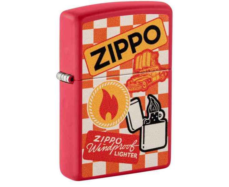 Эта яркая матовая зажигалка Red Matte выполнена в восхитительном ретро-дизайне: любимые всеми знаковые эмблемы и элементы Zippo на клетчатом фоне.