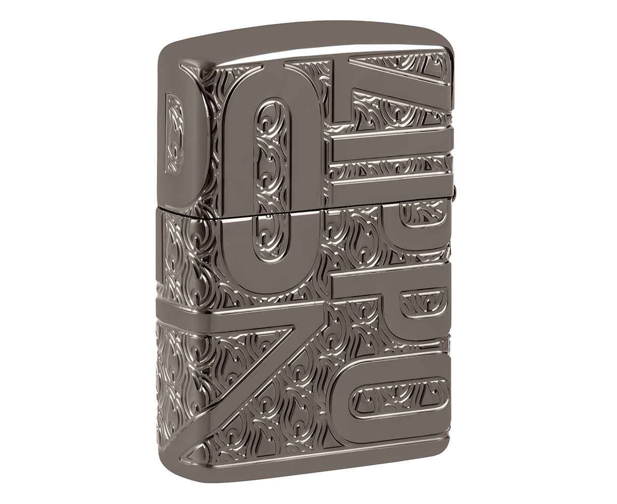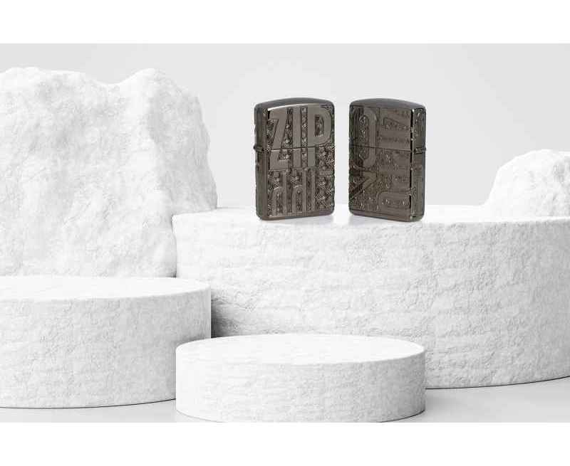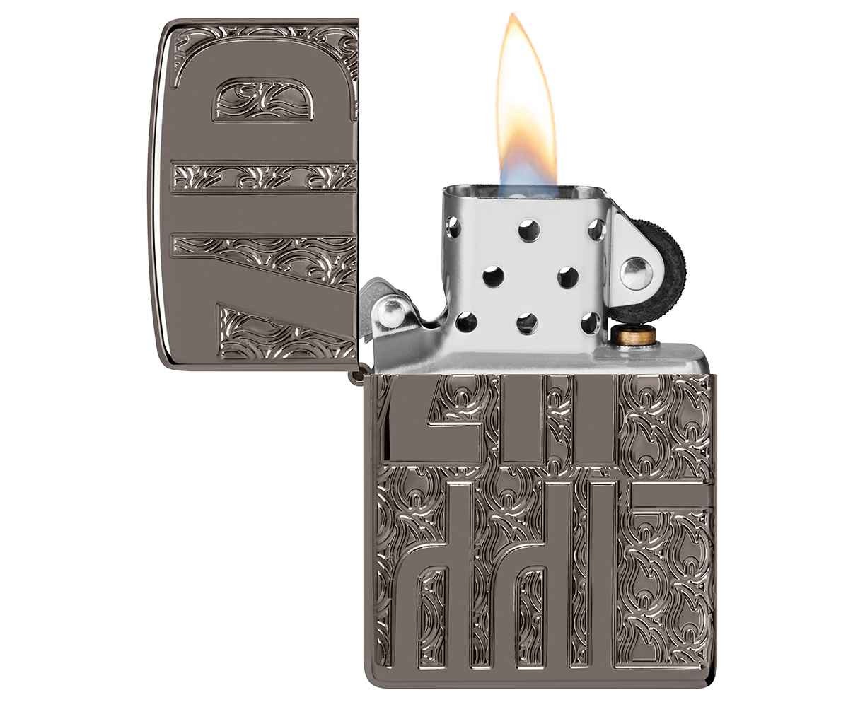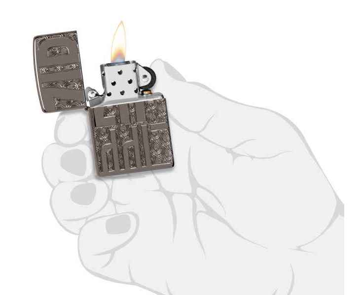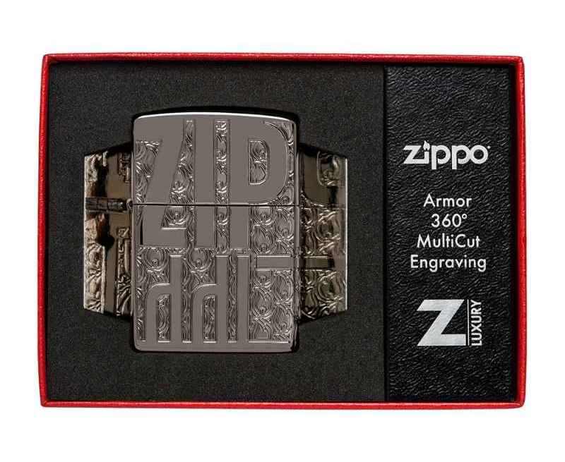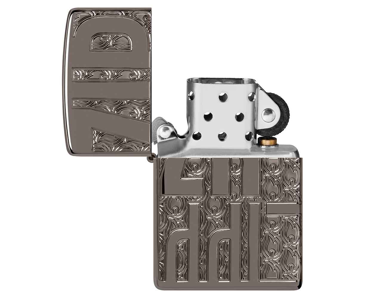 Эффектная зажигалка Armor® Black Ice® украшена богатой текстурированной многогранной гравировкой, которая подчеркивает ярко выделяющийся мотив Zippo на фоне классического дизайна язычков пламени.