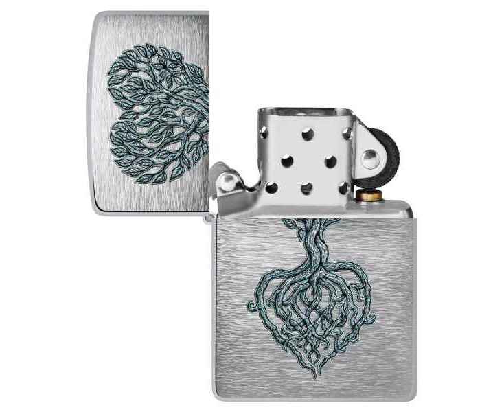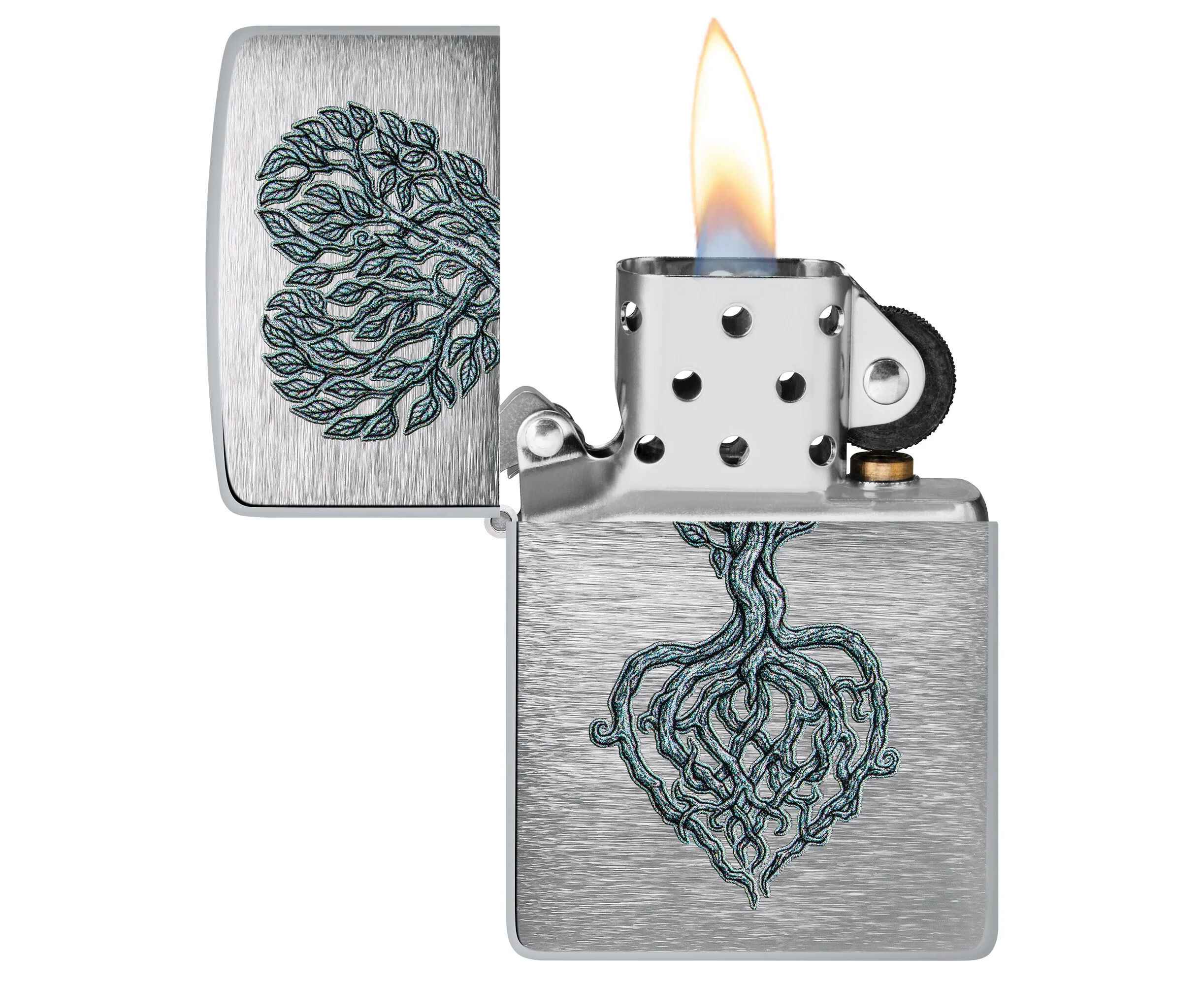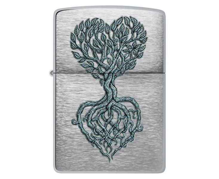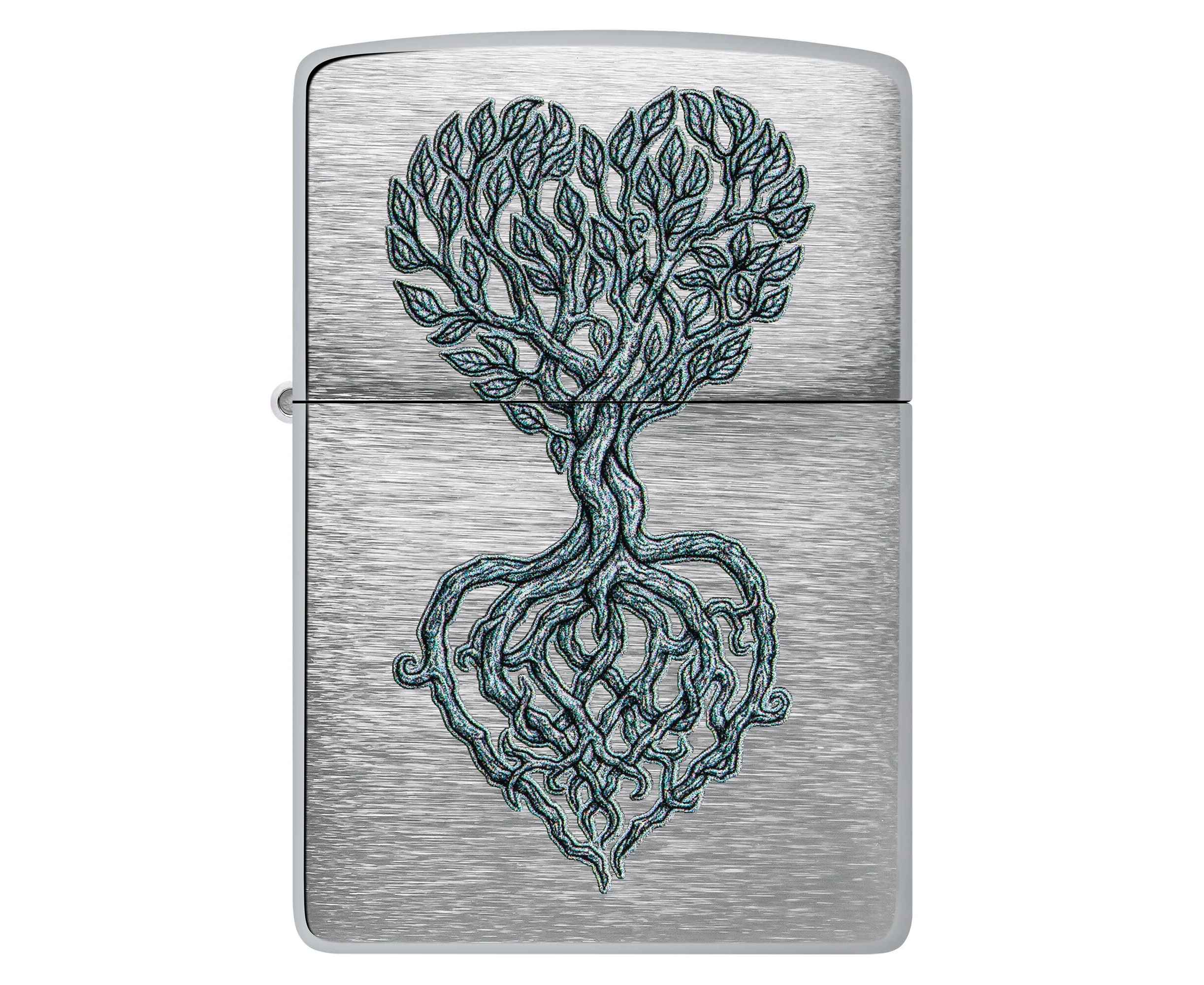 Изящное дерево, образующее форму сердца, словно произрастает с поверхности этой классической зажигалки Brushed Chrome. Очаровательный дизайн выполнен методом цветного изображения.