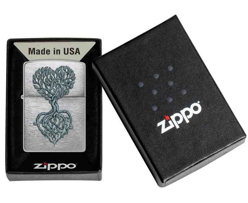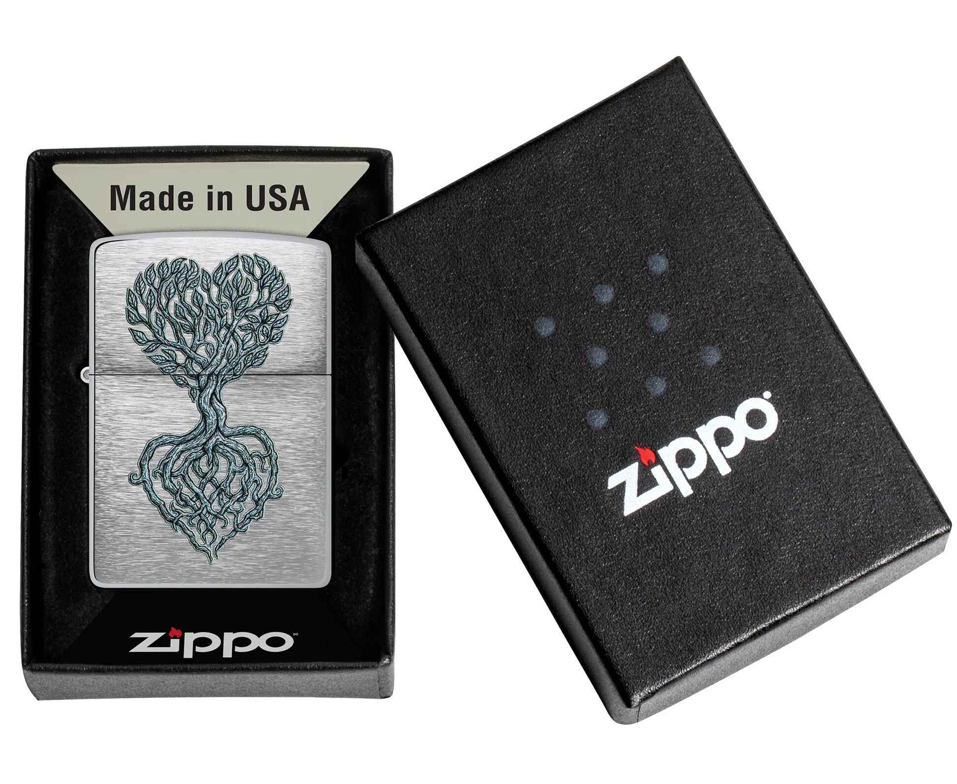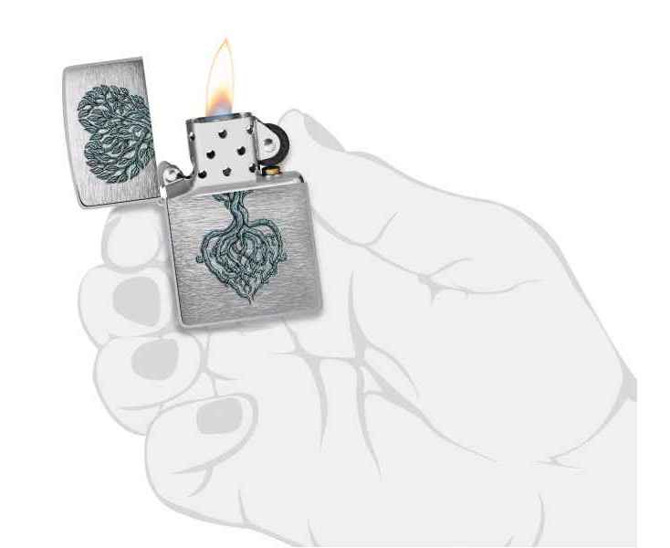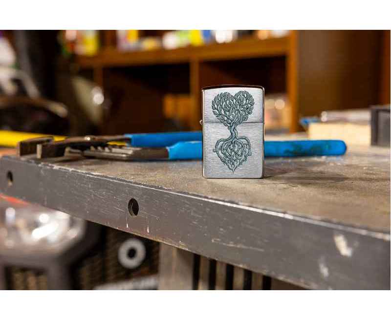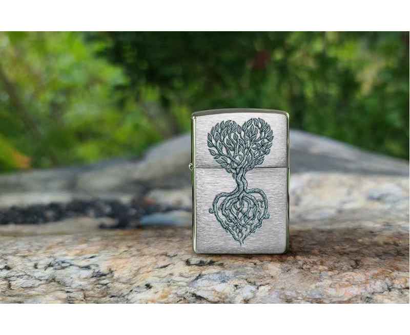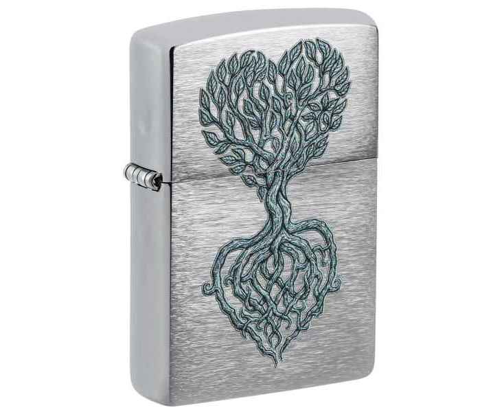 Изящное дерево, образующее форму сердца, словно произрастает с поверхности этой классической зажигалки Brushed Chrome. Очаровательный дизайн выполнен методом цветного изображения.