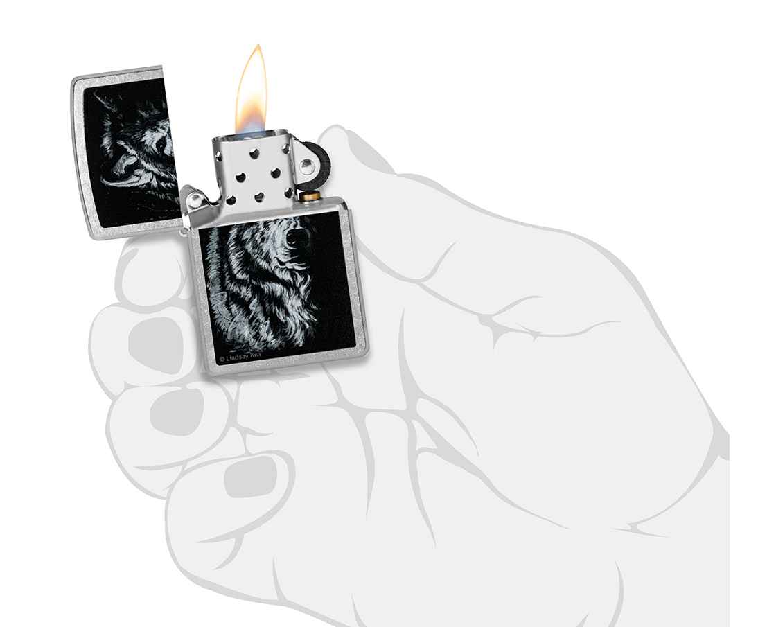 Художница и защитница окружающей среды Линдси Киви, специализирующаяся на портретах животных, использует свое искусство, чтобы подтвердить нашу неразрывную связь с природой и вдохновить зрителей углубить свою связь со всеми живыми существами. Каждый захватывающий мазок ее работы «Теневой волк» запечатлен на этой зажигалке Street Chrome.
