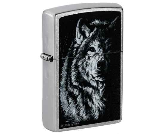 Зажигалка ZIPPO Shadow Wolf с покрытием Street Chrome, латунь/сталь, серебристая, матовая, 38x13x57 мм