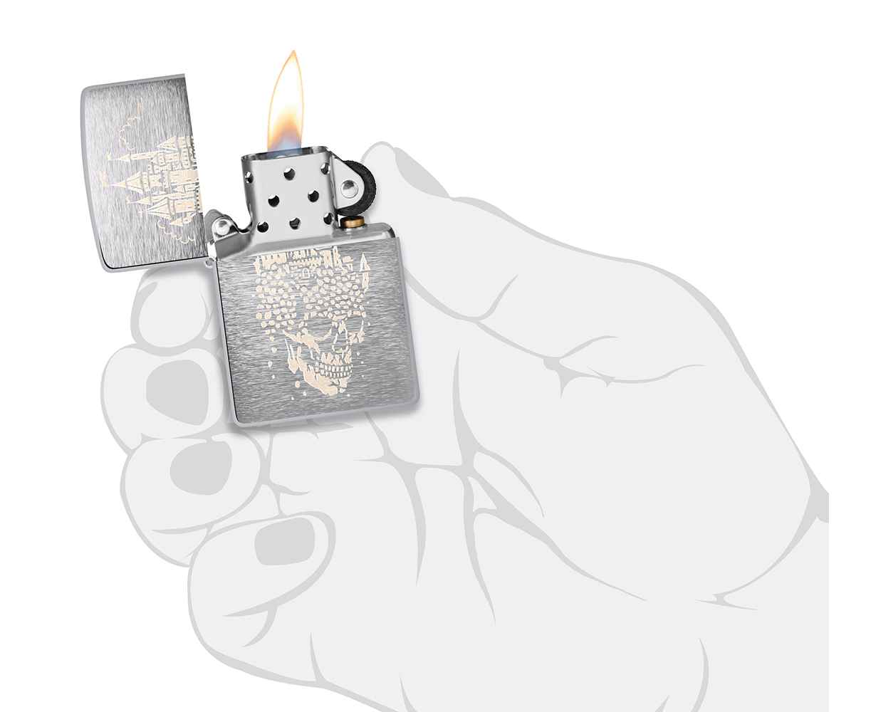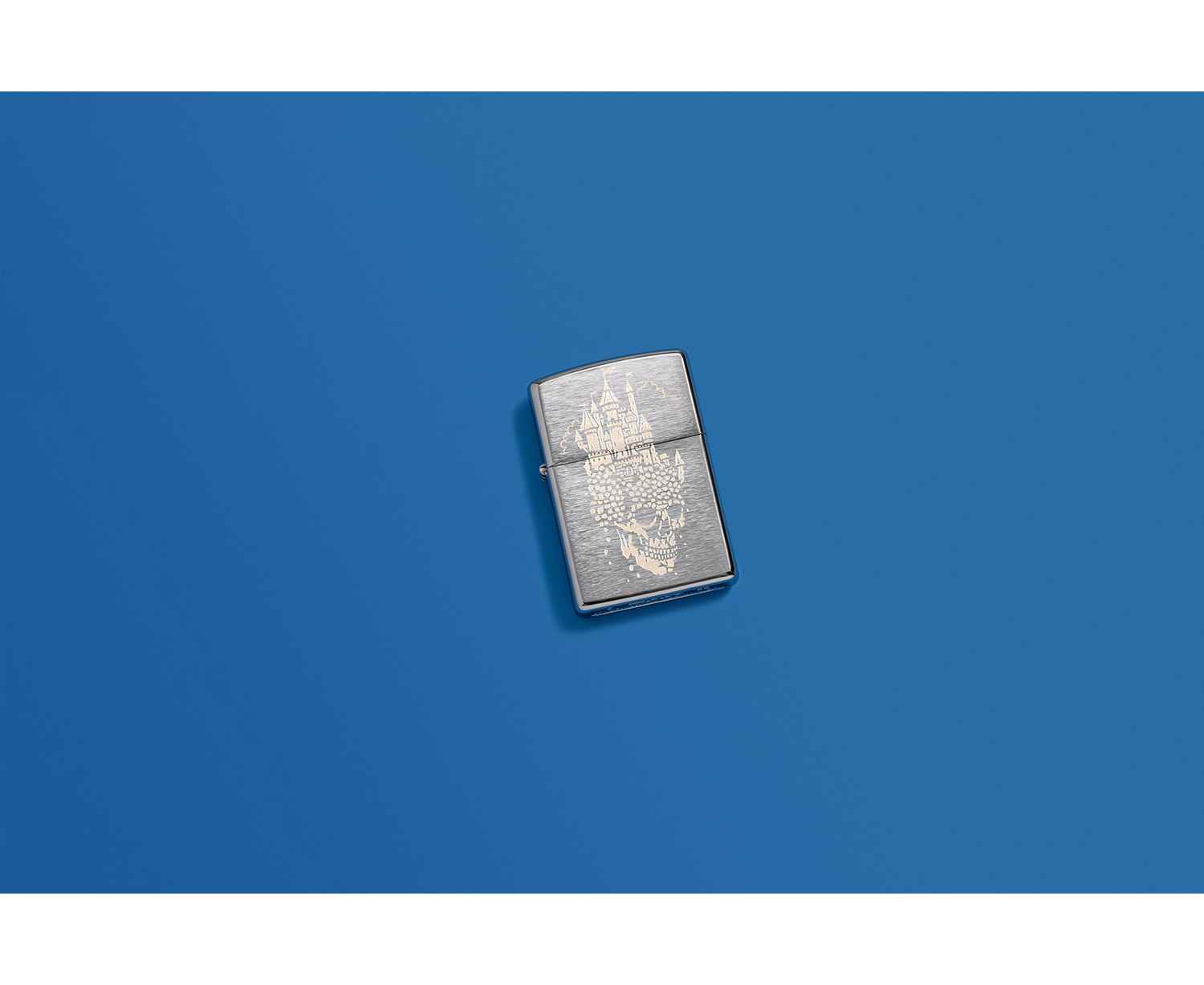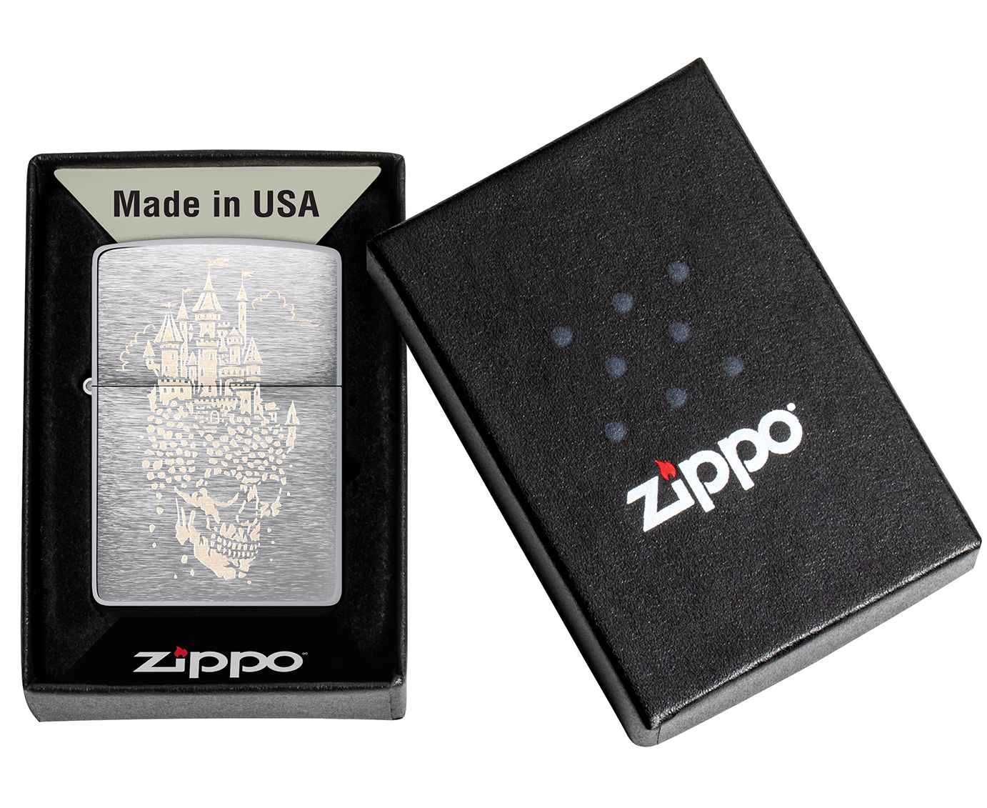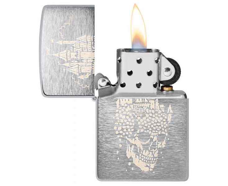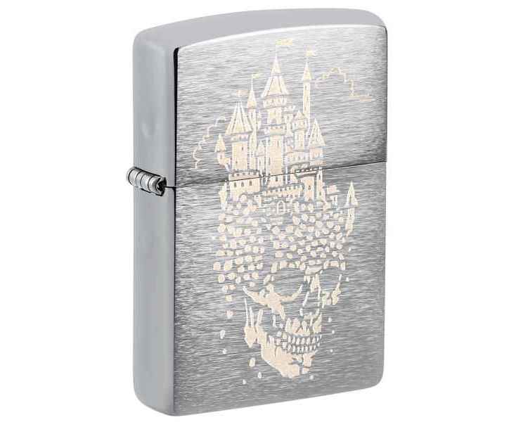 Зажигалка ZIPPO Skull Castle Design с покрытием Brushed Chrome, латунь/сталь, серебристая, 38x13x57 мм
