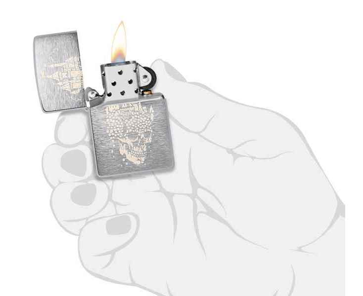 Подробнее о Zippo Зажигалка ZIPPO Skull Castle Design с покрытием Brushed Chrome, латунь/сталь, серебристая, 38x13x57 мм