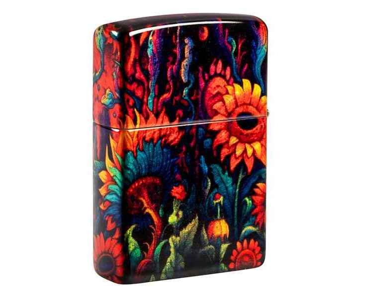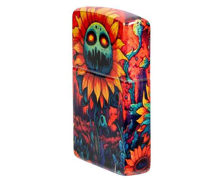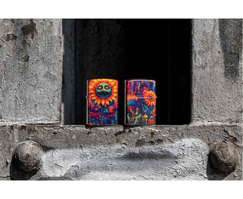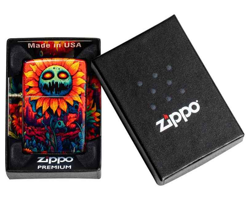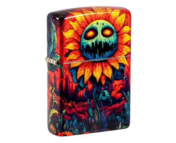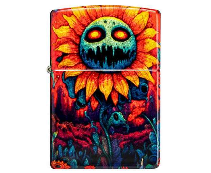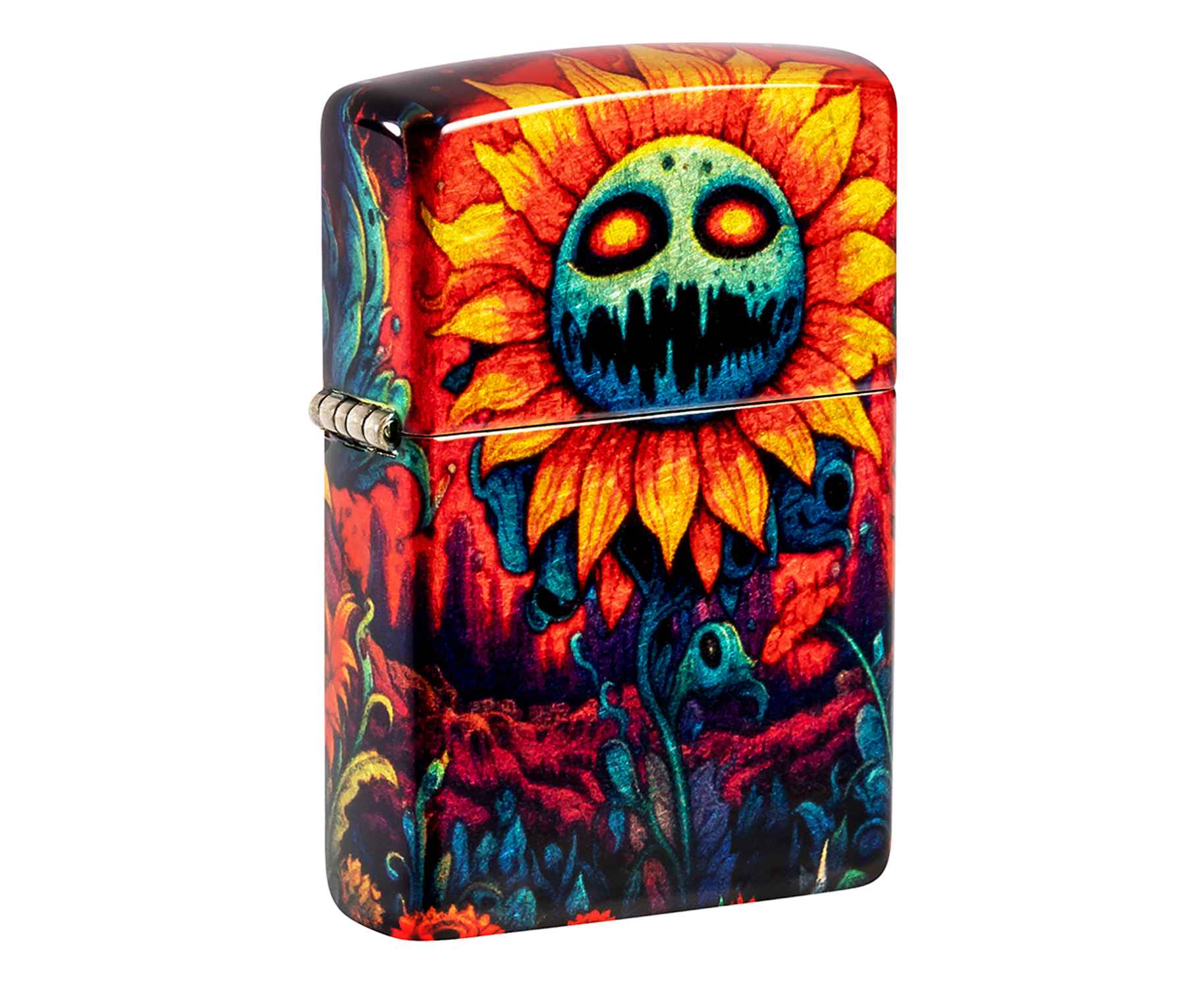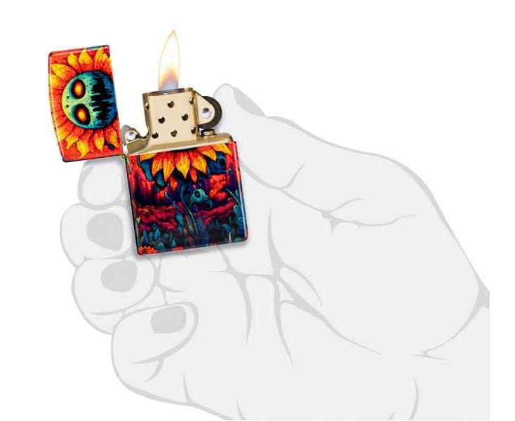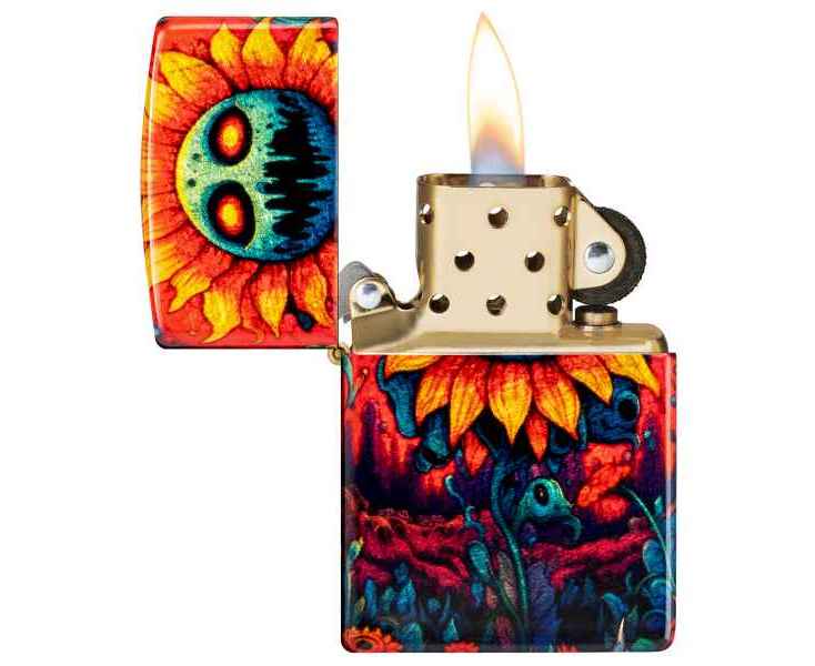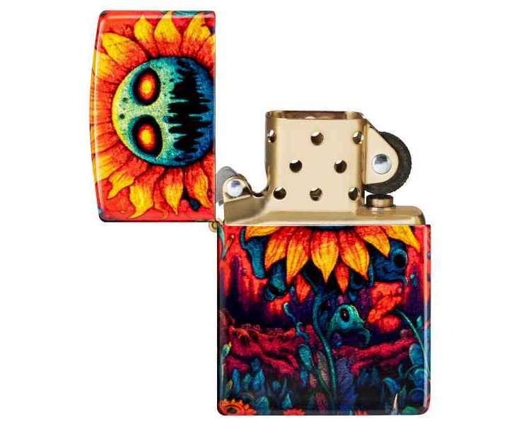 Зажигалка ZIPPO Spooky Sunflower с покрытием 540 Tumbled Brass, латунь/сталь, разноцветная, 38x13x57 мм