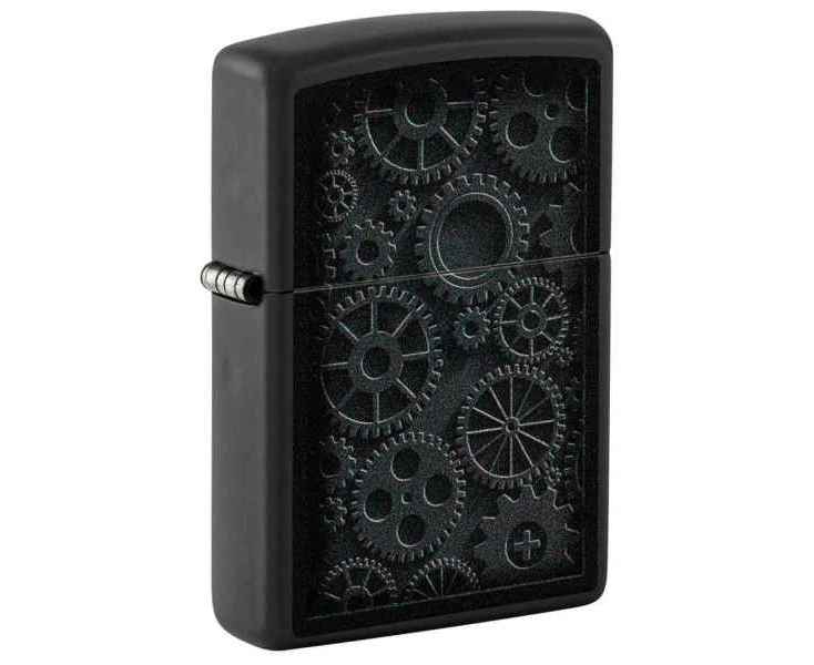 Прочные шестеренки крутятся в вечном движении на поверхности этой классической зажигалки Black Matte в монохромном цветном дизайне.