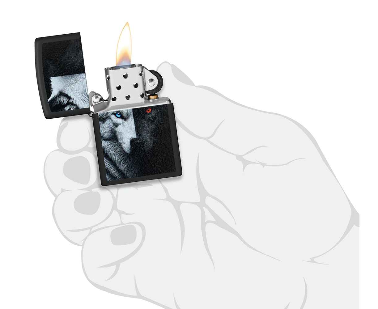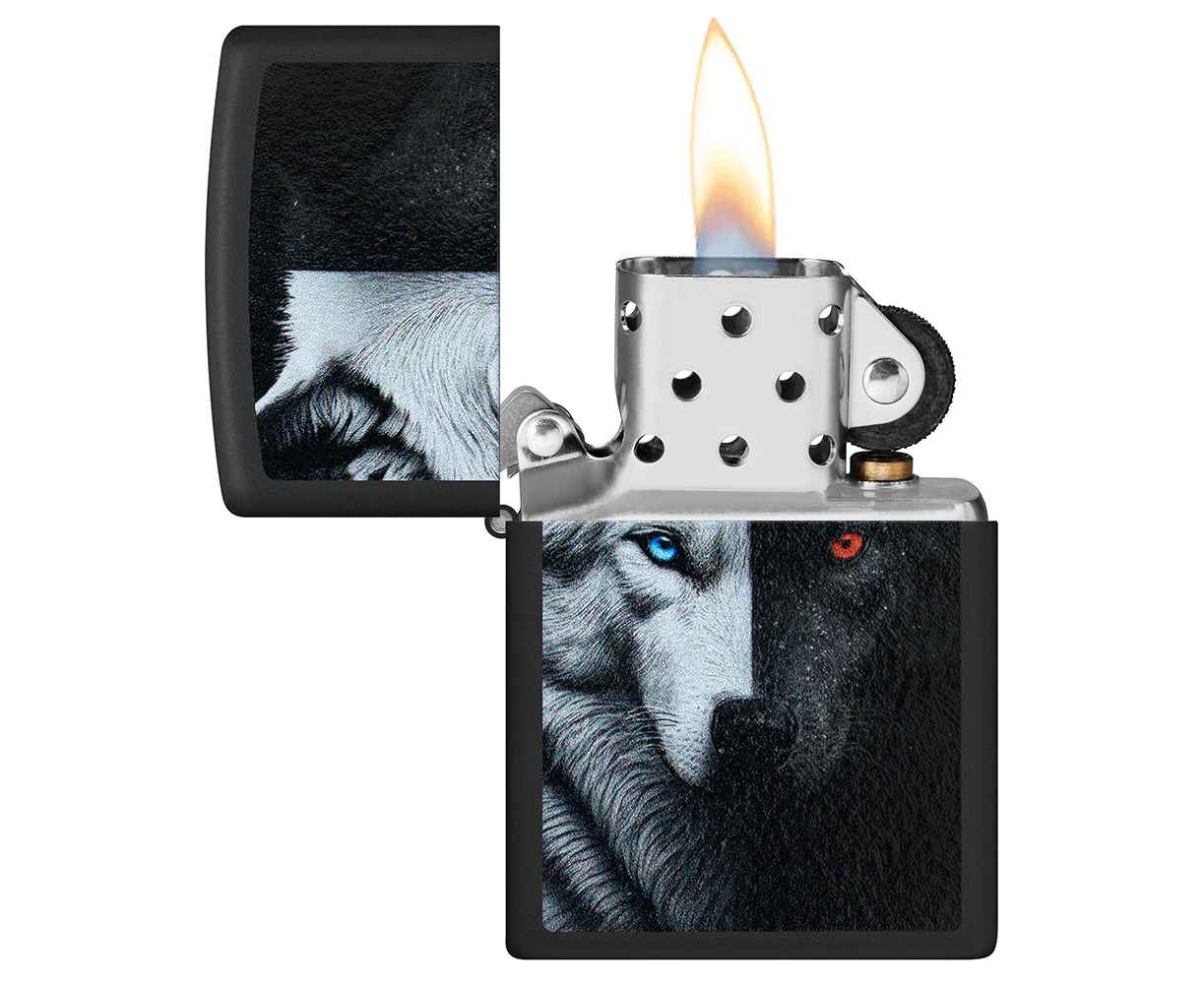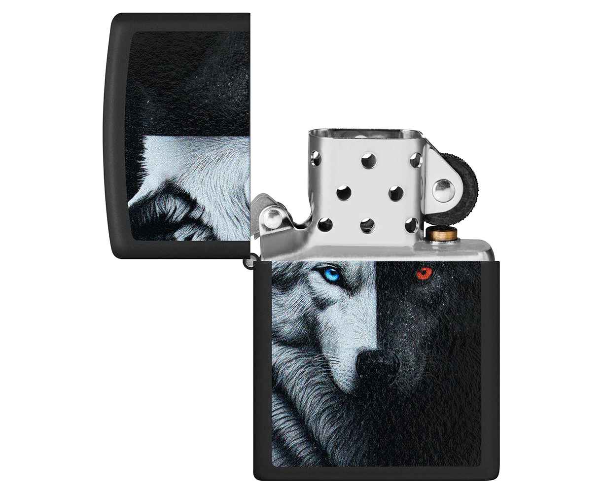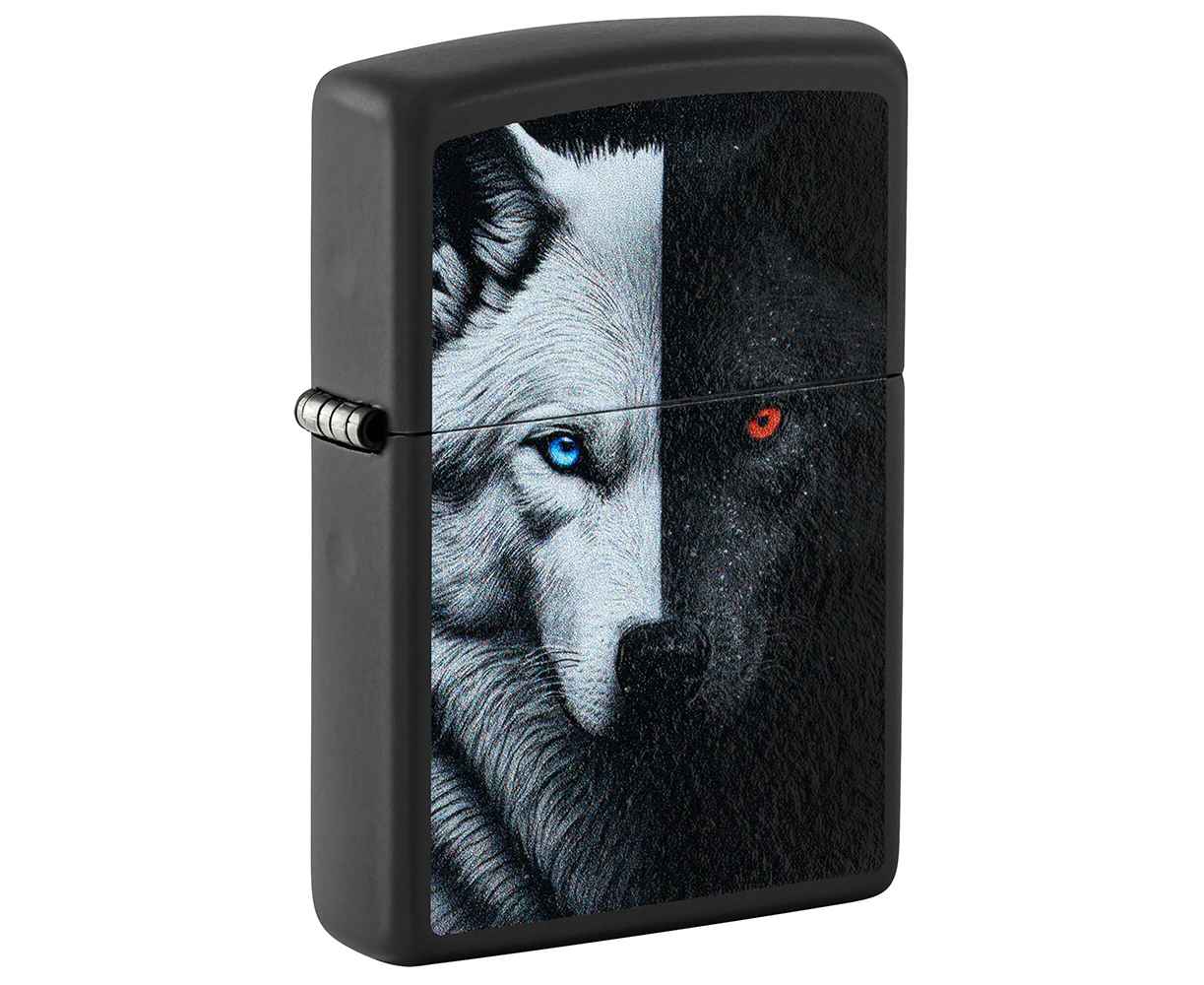 Индейская пословица о двух волках оживает на этой классической черной матовой зажигалке в ярком дизайне, выполненного методом цветного изображения. Согласно легенде, один олицетворяет гнев, горечь и эгоизм, а другой — любовь, сострадание и щедрость. Оба борются внутри каждого из нас, и победит только тот, которого вы кормите.