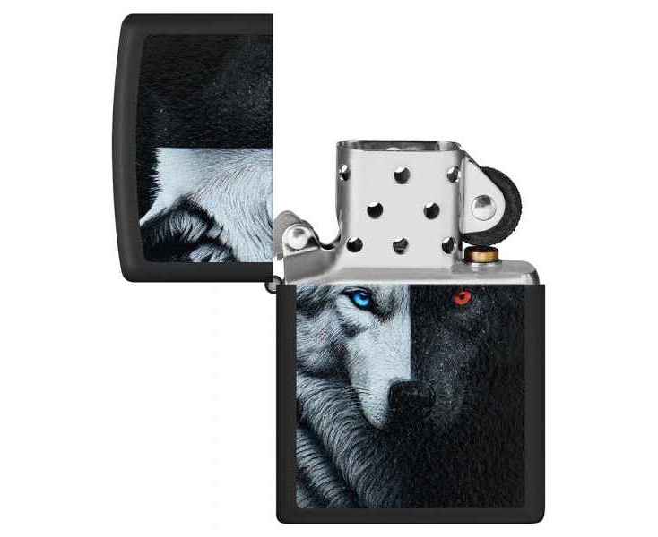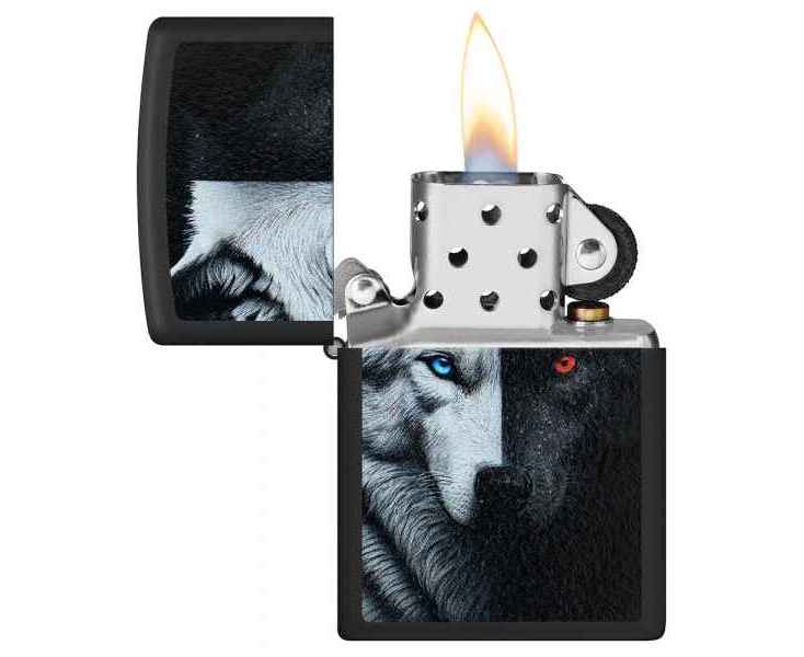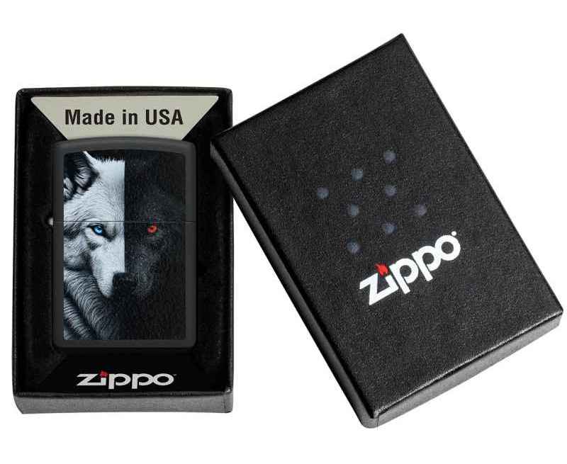 Зажигалка ZIPPO Two Wolves с покрытием Black Matte, латунь/сталь, черная, 38x13x57 мм
