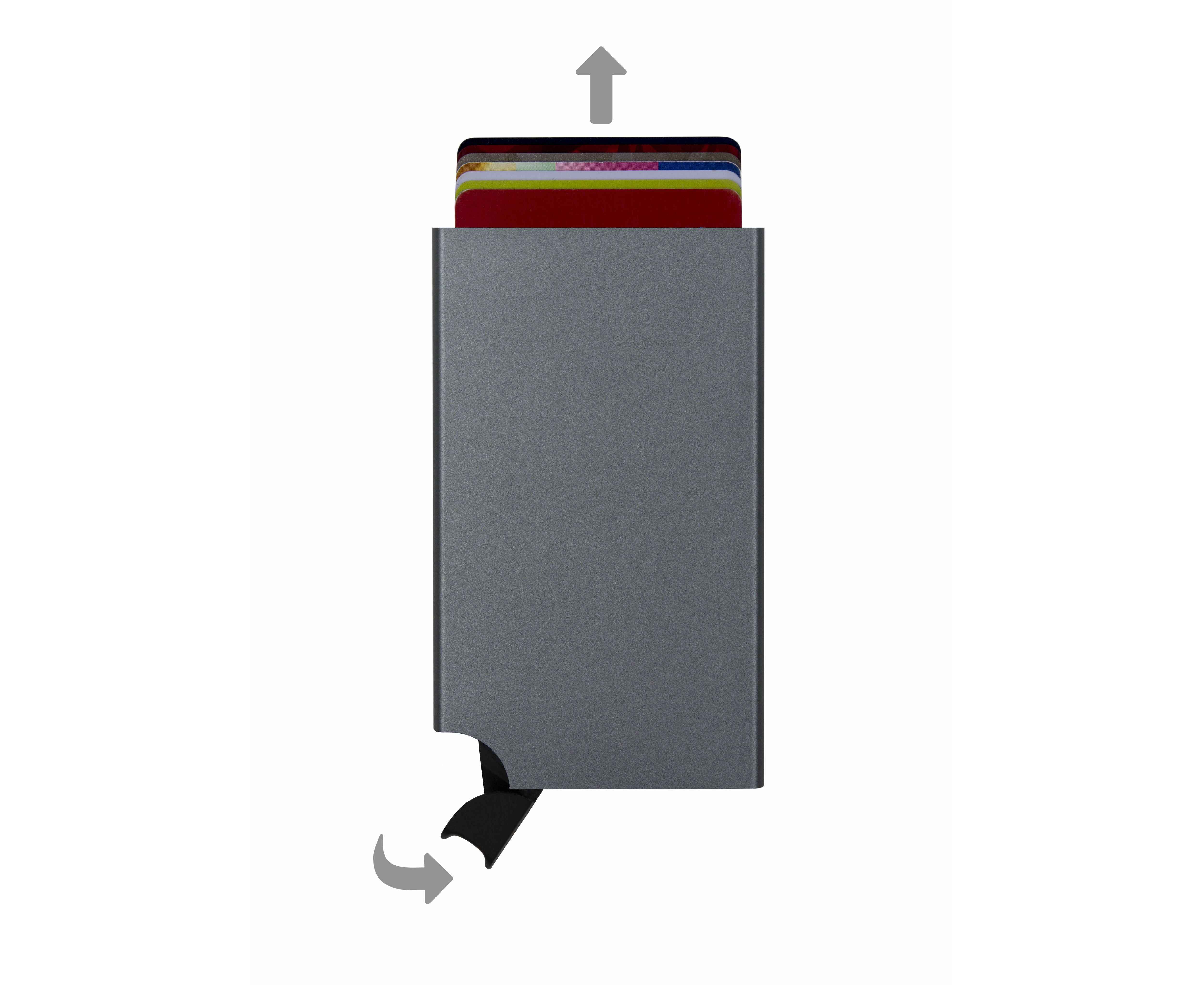 Компактный алюминиевый держатель для карт с RFID-защитой. Вмещает до 6 карт, оснащён удобным слайдером для быстрого доступа. Надёжно защищает карты от изгиба и считывания.