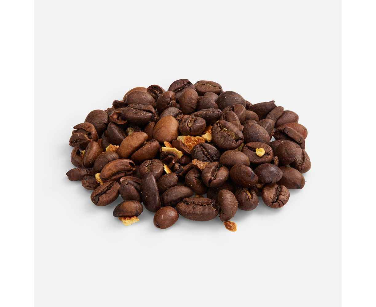 Натуральный зерновой кофе средней обжарки в сочетании с дольками сушеного апельсина — прекрасный подарок для кофеманов, ценящих богатство и насыщенность вкуса. Легкая сладость и свежий апельсиновый флер — для тех, кто любит бодрящий вкус с изюминкой.
