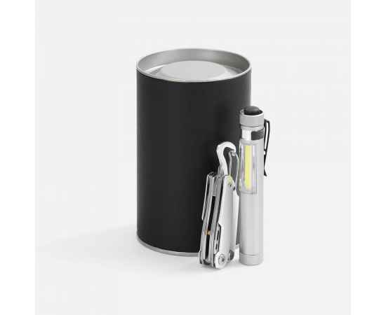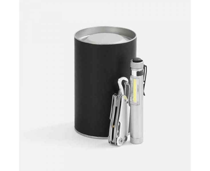 Миниатюрный, но незаменимый набор с мультитулом и фонариком в аккуратном тубусе.