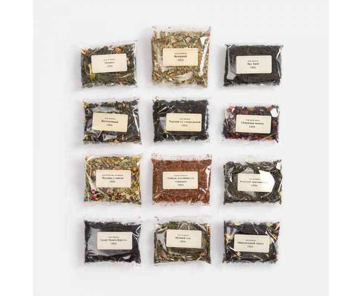 - Вечерний травяной. Состав: мелисса, лист смородины, ромашка, мята, шалфей, цветки василька, мальва, лаванда, ароматизатор «Смородина».