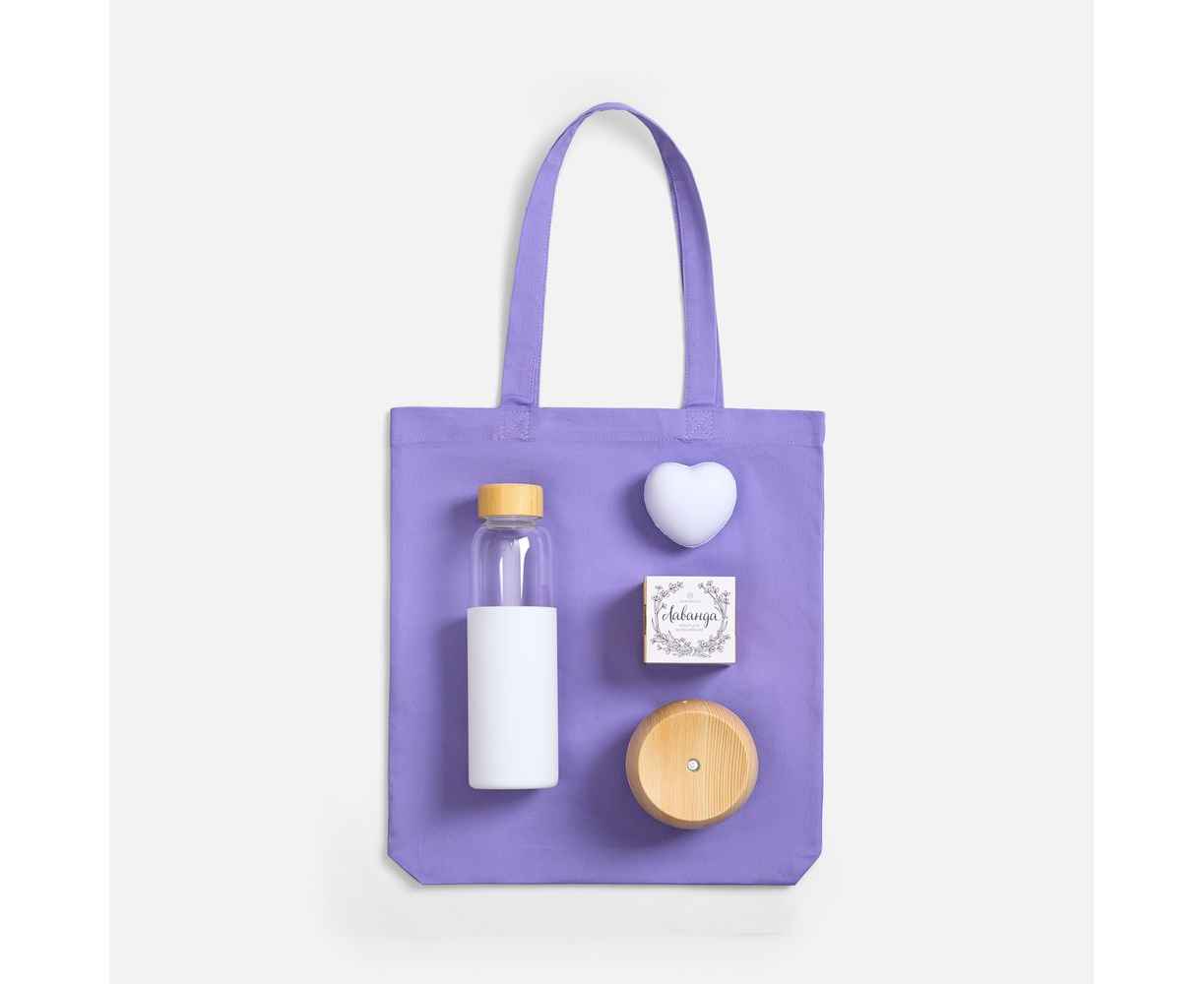 Красочный набор Lavendero — рецепт идеального дня. Пусть сумка насыщенного лавандового оттенка притягивает к себе только приятные покупки, а мягкий антистресс будет под рукой в нужный момент. Пусть воздух вокруг будет свеж, а на столе цветет лаванда — символ покоя и нежности.