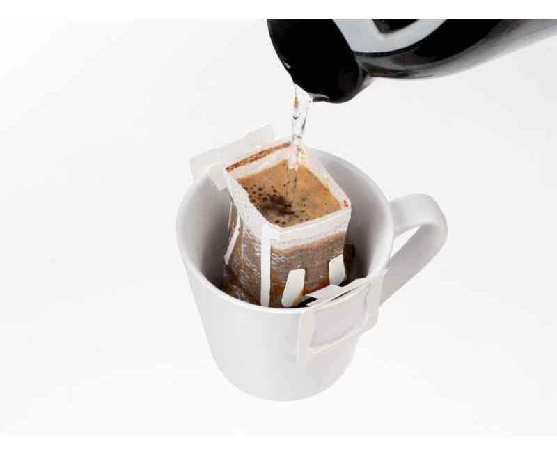 Дрип-пакет — легкий способ альтернативного заваривания натурального кофе прямо в чашке. Вам потребуются только любимая кружка и горячая вода: вскройте фильтр-пакет по линии отрыва, разместите его на чашке и медленно пролейте 150-200 мл воды через молотый кофе. Если хотите получить напиток покрепче — оставьте дрип в кружке на 2-3 минуты.