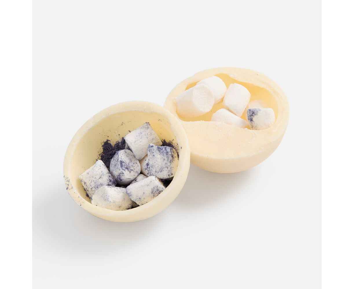 Нежная бомбочка из белого шоколада — маленький момент уюта в вашем дне. Под тонкой, тающей оболочкой скрывается воздушное облако маршмеллоу и яркая цветная матча, создающая мягкий баланс сладости и легкой травянистой свежести.
