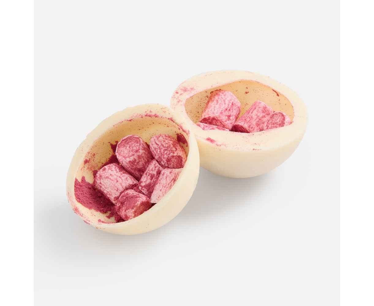 Нежная бомбочка из белого шоколада — маленький момент уюта в вашем дне. Под тонкой, тающей оболочкой скрывается воздушное облако маршмеллоу и яркая цветная матча, создающая мягкий баланс сладости и легкой травянистой свежести.