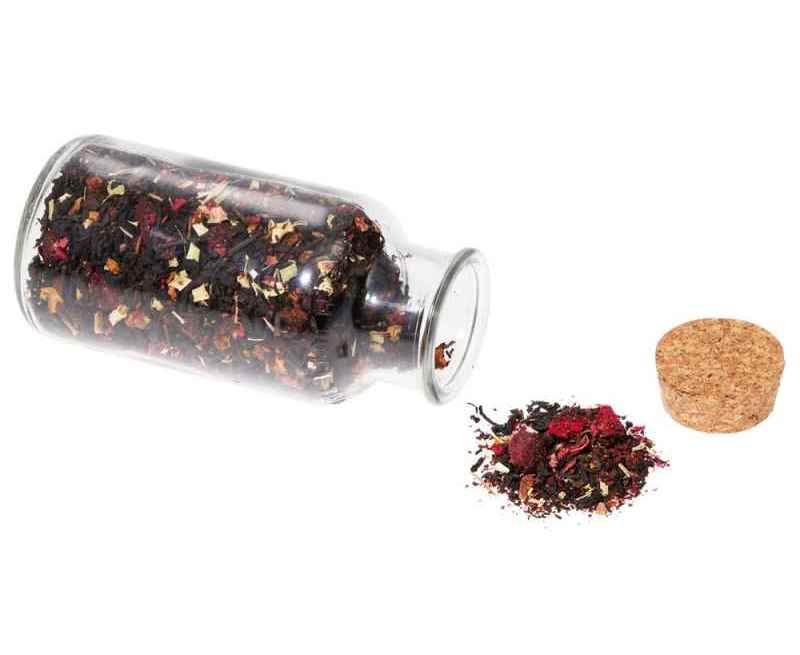 Состав: чай черный с ананасом и соком ананаса (чай черный байховый крупнолистовой, кусочки ананаса, сок ананаса), вишня сублимированная, цветки граната, сок граната, лемонграсс, ароматизатор натуральный Вишня, ароматизатор натуральный Апельсин.