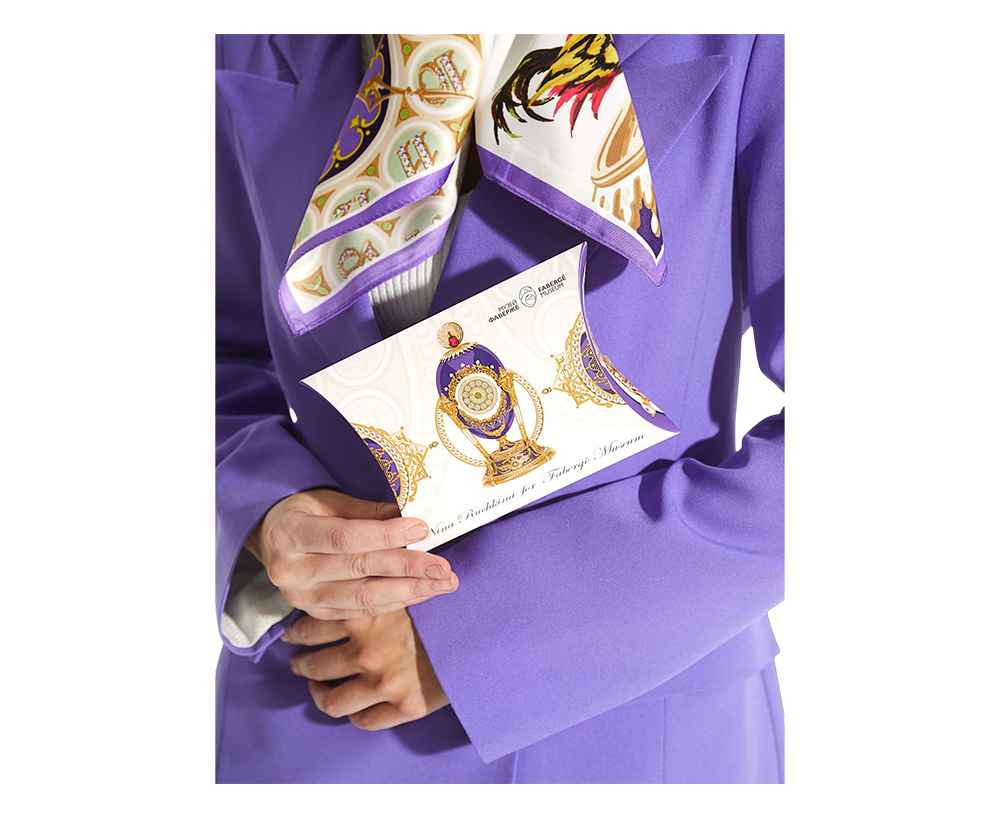 • Золото, алмазы, жемчуг, перья; литье, чеканка, гравировка, выпиловка, эмаль по гильошированному фону.