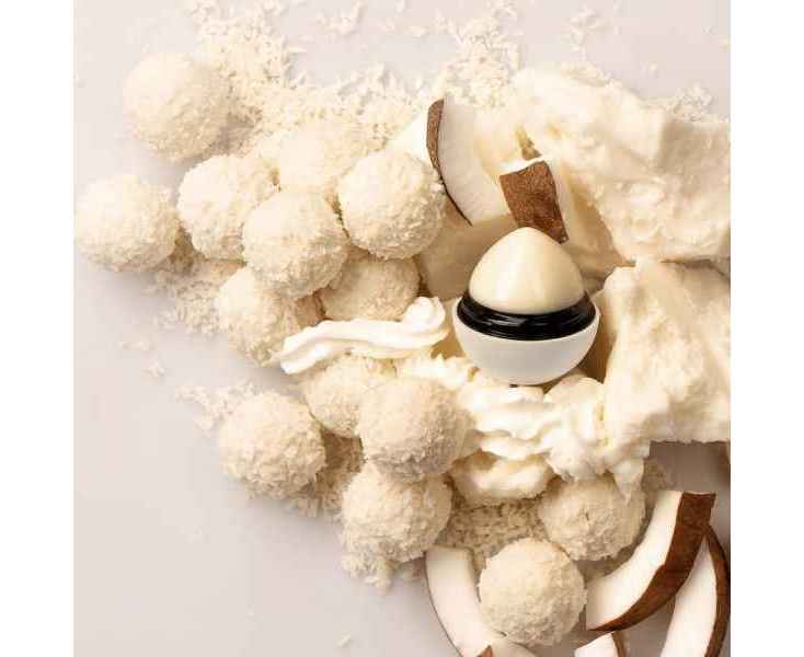Ухаживающий бальзам для губ с аппетитным ароматом кокоса и сливок.