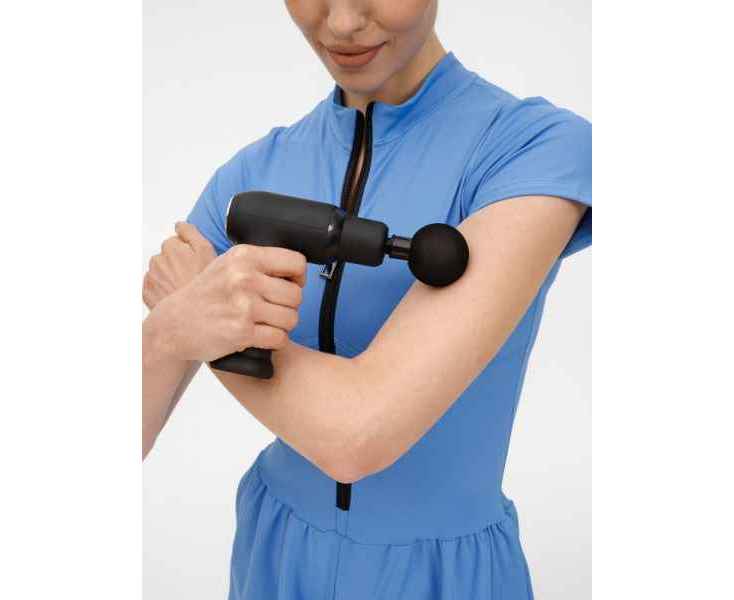 Конструкция массажера выполнена в форме мини-пистолета с тактильно приятным матовыми покрытием и эргономичной ручкой: его удобно держать и просто использовать благодаря кнопочной системе управления.