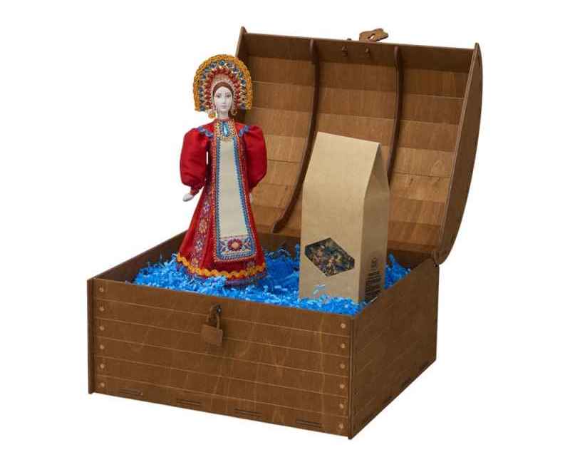 Подарочный набор с фарфоровой куклой и ароматным чаем.