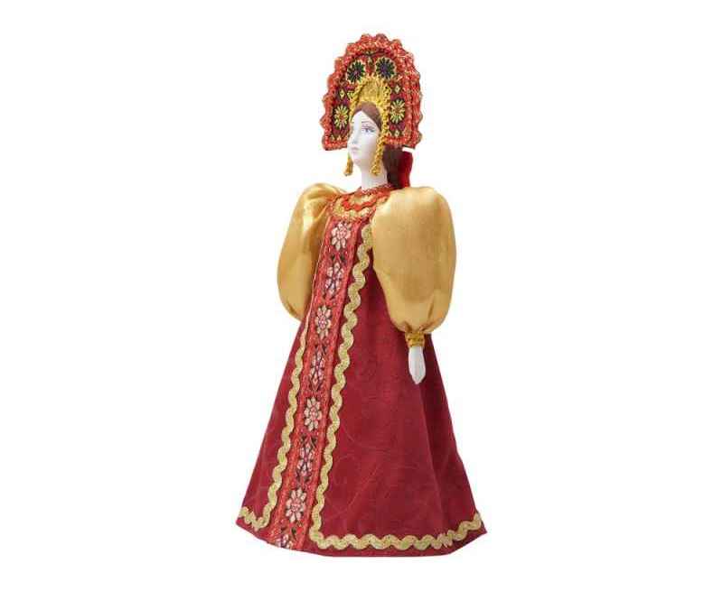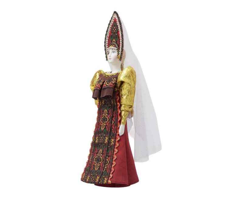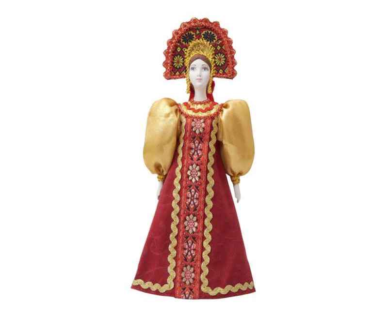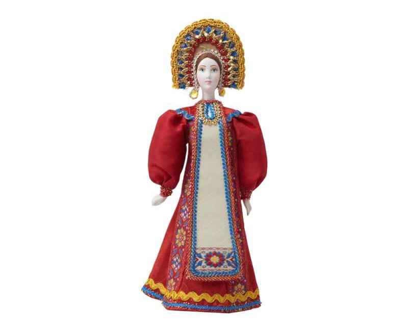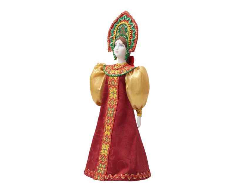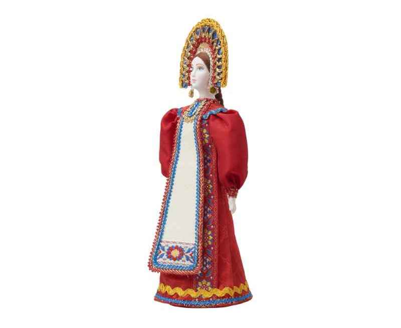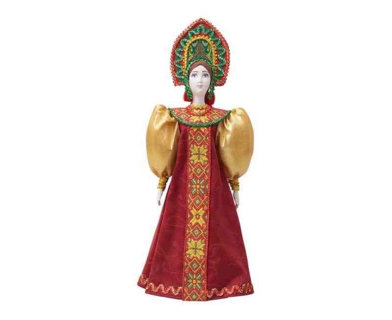 - Фарфоровая кукла в народном костюме ручной работы: расписной сарафан и кокошник с традиционной вышивкой воссоздают образ русской красавицы.