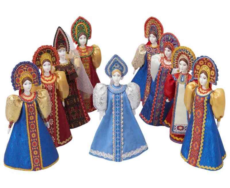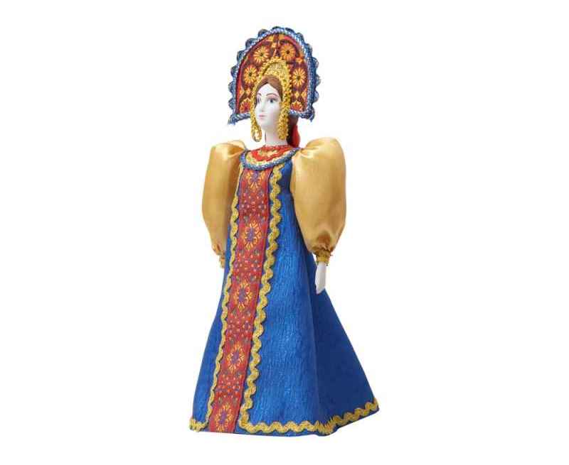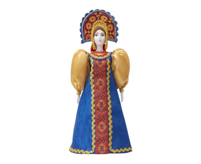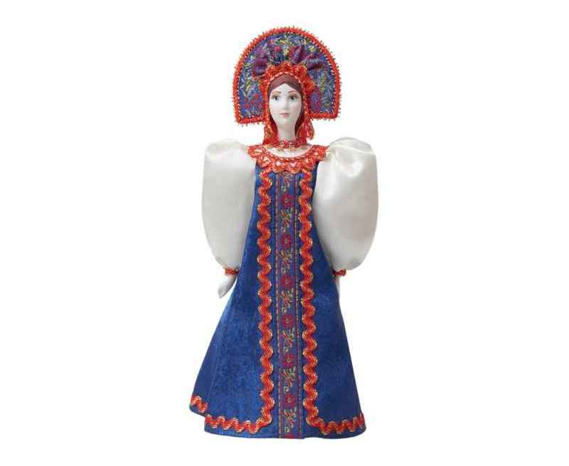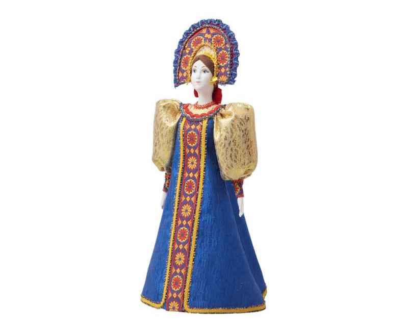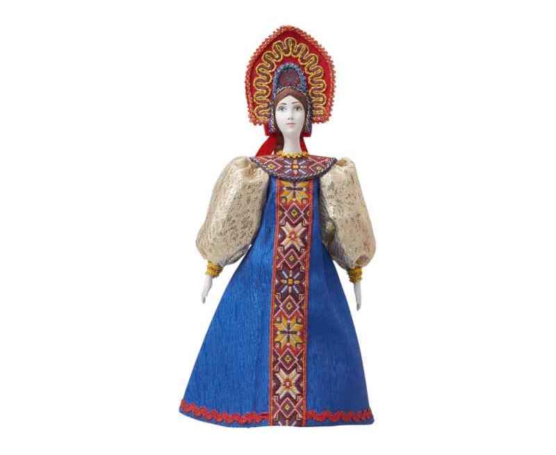 - Фарфоровая кукла в народном костюме ручной работы: расписной сарафан и кокошник с традиционной вышивкой воссоздают образ русской красавицы.