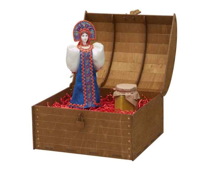 Роскошная упаковка: деревянный сундук с изящным замочком превращает вручение подарка в особый ритуал. Дополнительное брендирование шильдом спектрум делает презент эксклюзивным и памятным.