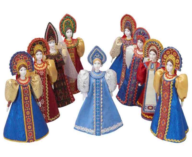 1. Фарфоровая кукла в народном костюме ручной работы: