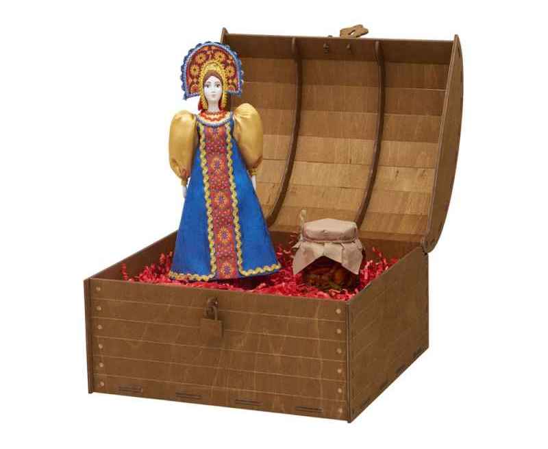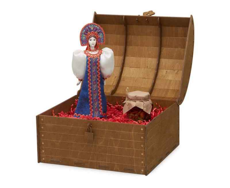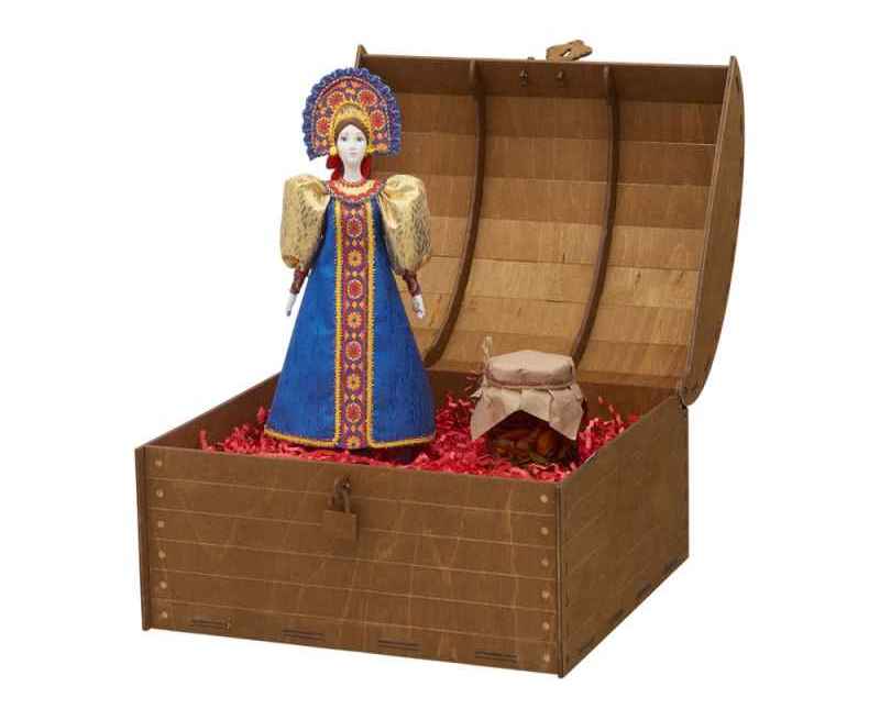 4. Деревянный сундук с изящным замочком превращает вручение подарка в особый ритуал. Дополнительное брендирование шильдом спектрум делает презент эксклюзивным и памятным.