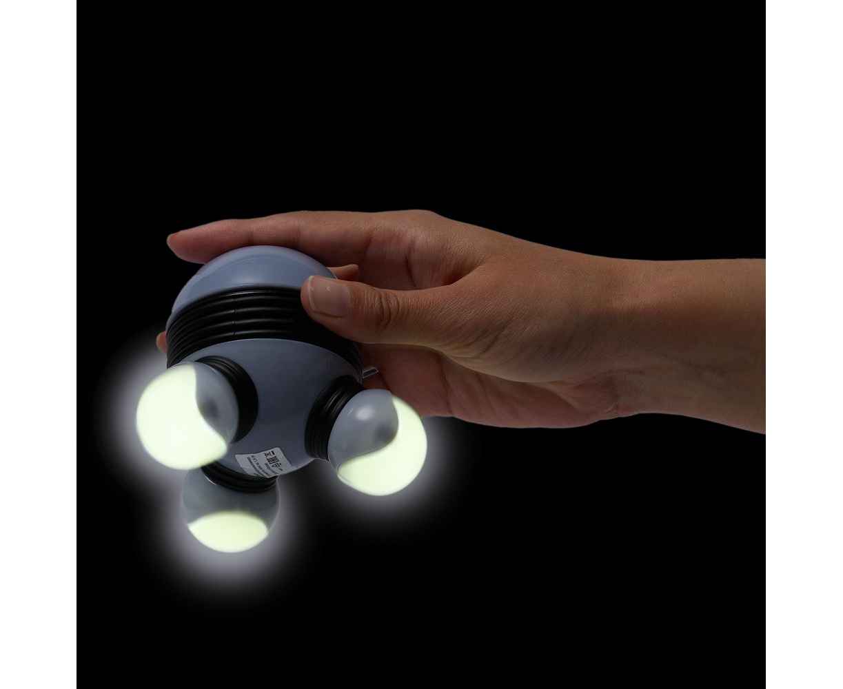 Массажер для тела Spacy — компактный вибрационный прибор, который поможет расслабить мышцы после напряженных тренировок или интенсивных физических нагрузок. Эргономичный дизайн и обтекаемые формы массажера напоминают космический корабль. Массаж осуществляется за счет вращения трех массажных головок, у которых предусмотрена также функция подсветки. Модель легко управляется одной кнопкой.