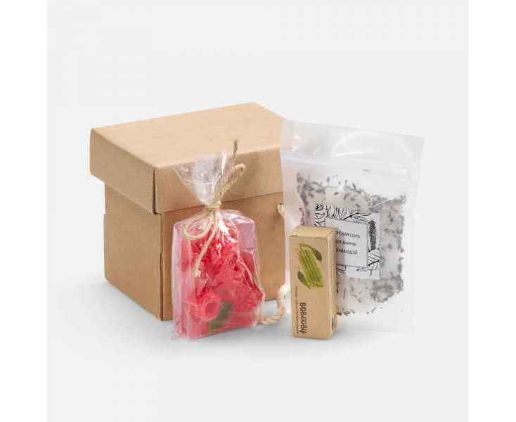 В наборе есть самое главное для хорошего расслабления и получения только приятных ощущений: ароматная соль для ванны, нежное мыло ручной работы и питательная помада.