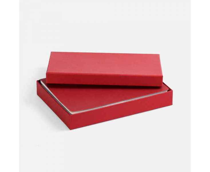 Коробка изготовлена из переплетного картона, кашированного гладкой дизайнерской бумагой Malmero.