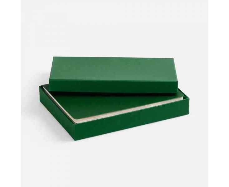 Коробка изготовлена из переплетного картона, кашированного гладкой дизайнерской бумагой Malmero.