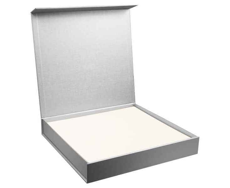 Подарочная коробка, размер 29,7*28,0*4,5 см, Solution Prestige Magnum Linen с магнитным клапаном под индивидуальную вырубку, серебристая, с бежевым ложементом
