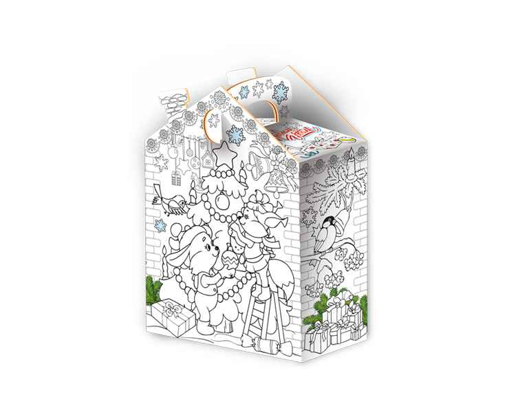 Это оригинальная упаковка, оформленная в виде зайца, который выступает в роли художника.Такая упаковка станет отличным подарком, создающим атмосферу радости и творчества в новогодние праздники.