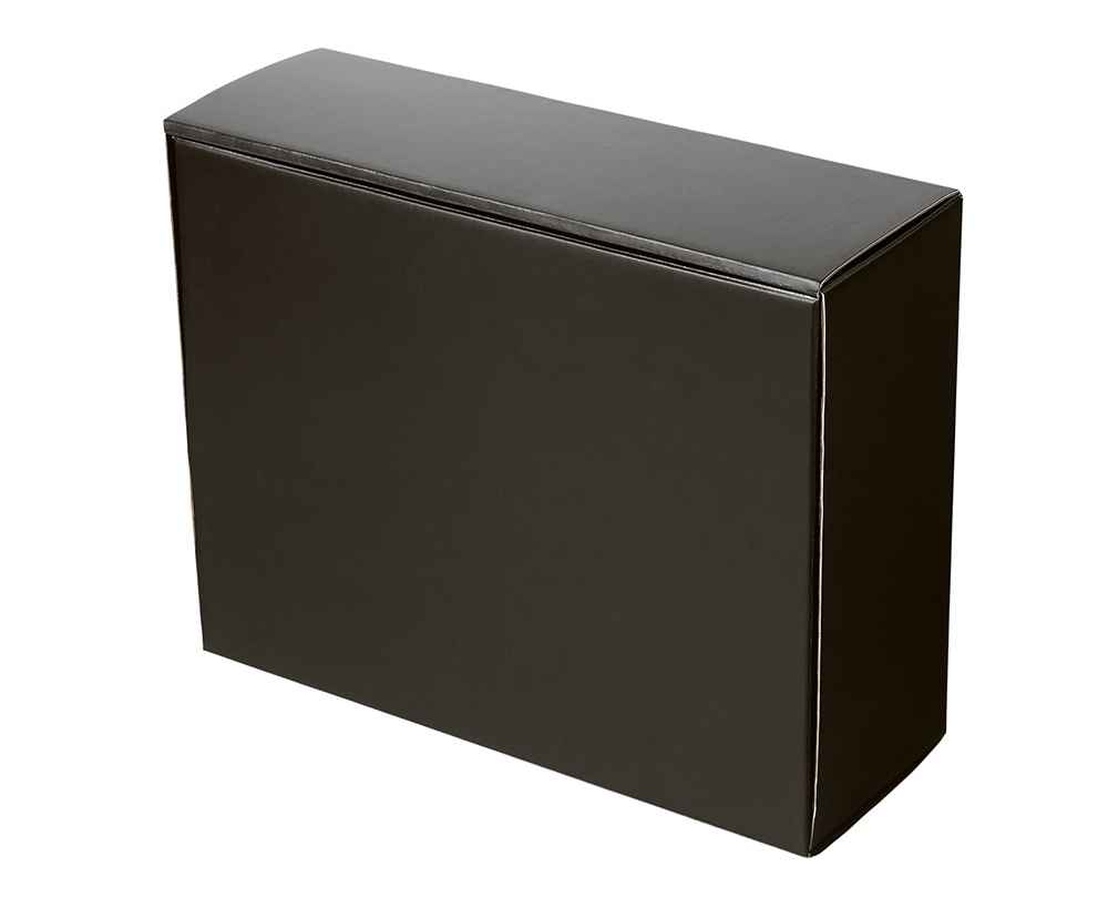 Самосборная подарочная коробка из микрогофрокартона, кашированная бумагой с матовой ламинацией, выглядит элегантно и надёжно защищает содержимое.