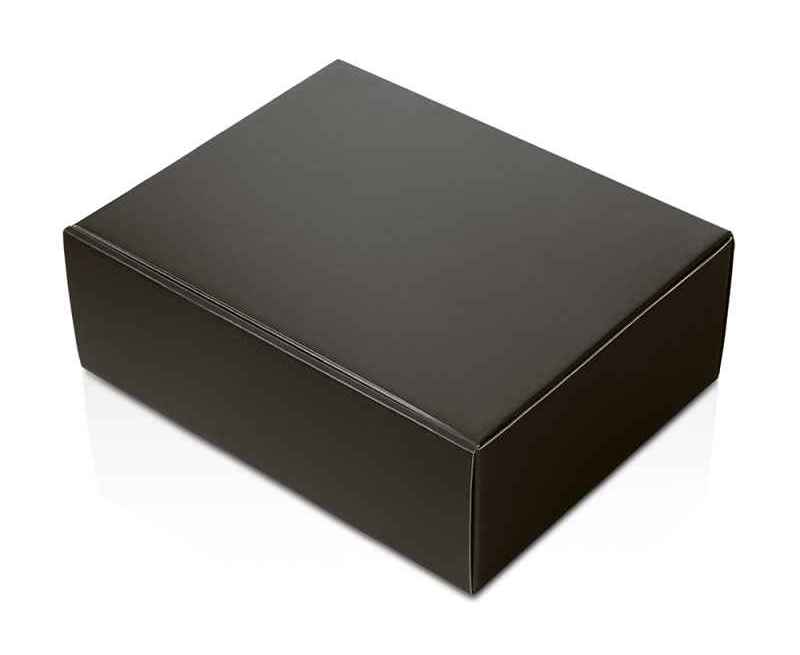 Самосборная подарочная коробка из микрогофрокартона, кашированная бумагой с матовой ламинацией, выглядит элегантно и надёжно защищает содержимое.