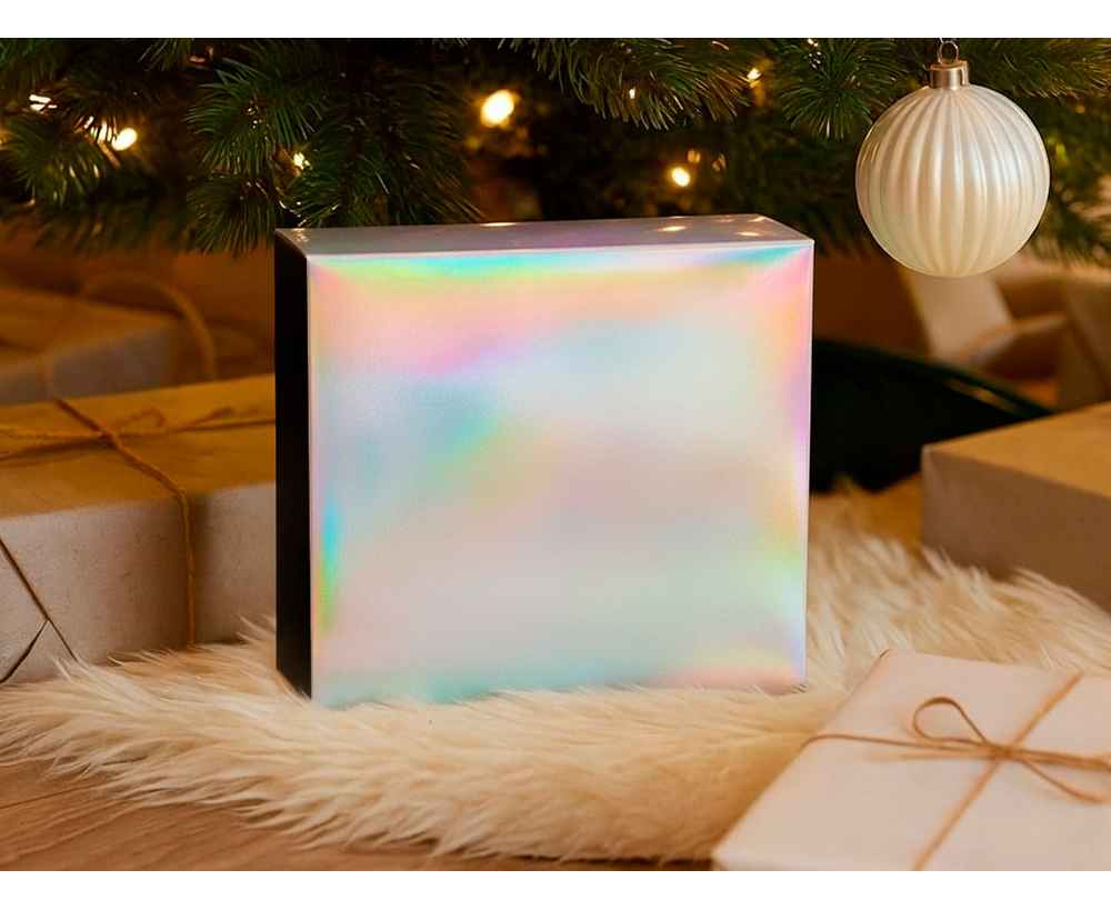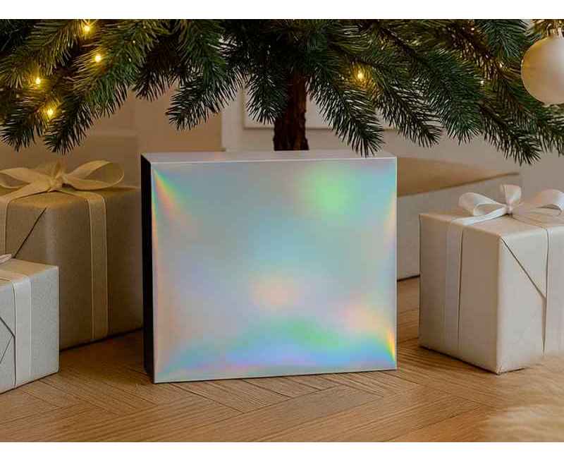 Упаковка — это первое впечатление о подарке. В преддверии Нового года особенно важно создать атмосферу праздника — стильная и аккуратно выполненная коробка с голографическим шубером сразу вызывает ощущение заботы, уюта и волшебного ожидания.