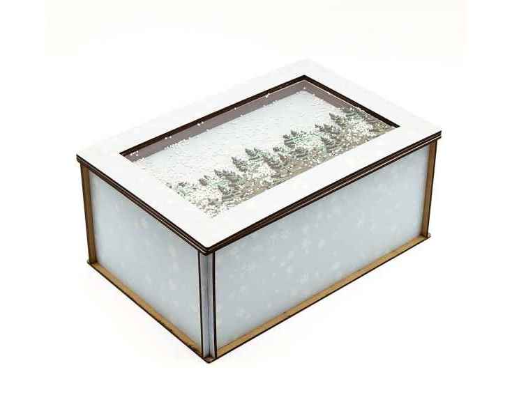 Подробнее о Лес в снегу (прямоугольная, светлая) - упаковка новогодняя из дерева