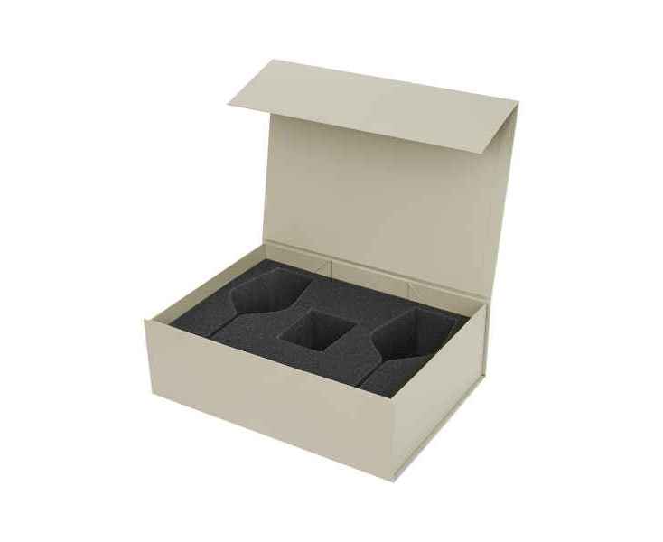 Тёмно-серый оттенок ложемента с легким блеском не только создает презентабельный и современный вид, но и гармонично сочетается с подарочной упаковкой любого цвета.