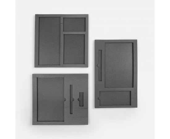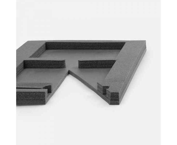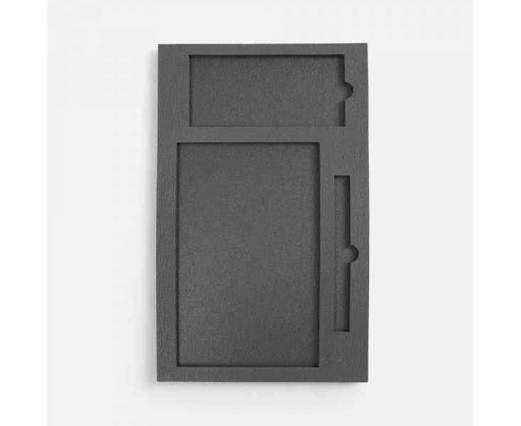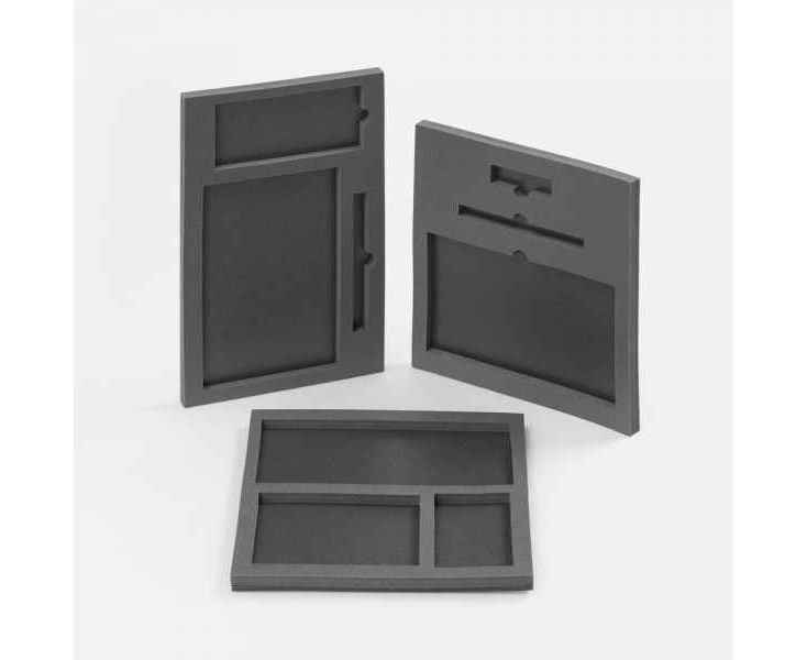 Ложемент, изготовленный из материала Izolon 500 черного цвета, представляет собой многослойную конструкцию, состоящую из нижнего слоя толщиной 5 мм и верхнего слоя толщиной 10 мм. В соответствии с утвержденным макетом, проемы для размещения предметов могут быть спроектированы как в одном, так и в обоих слоях.